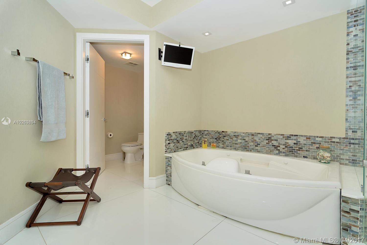 This wonderful unit features substantial remodeling and a complete renovation of its interior design. Renovations include ceramic flooring, designer built-in furniture, custom doors, recess lighting, powder room, and much more. The condo features a breath taking view of the intra-coastal line and of Golden Beach. Hamptons South has many amenities including a beautiful infinity pool, full scale gym, sauna, tennis courts, pool and playground for children, onsite restaurant partially included in the association fee. This property is a must see!