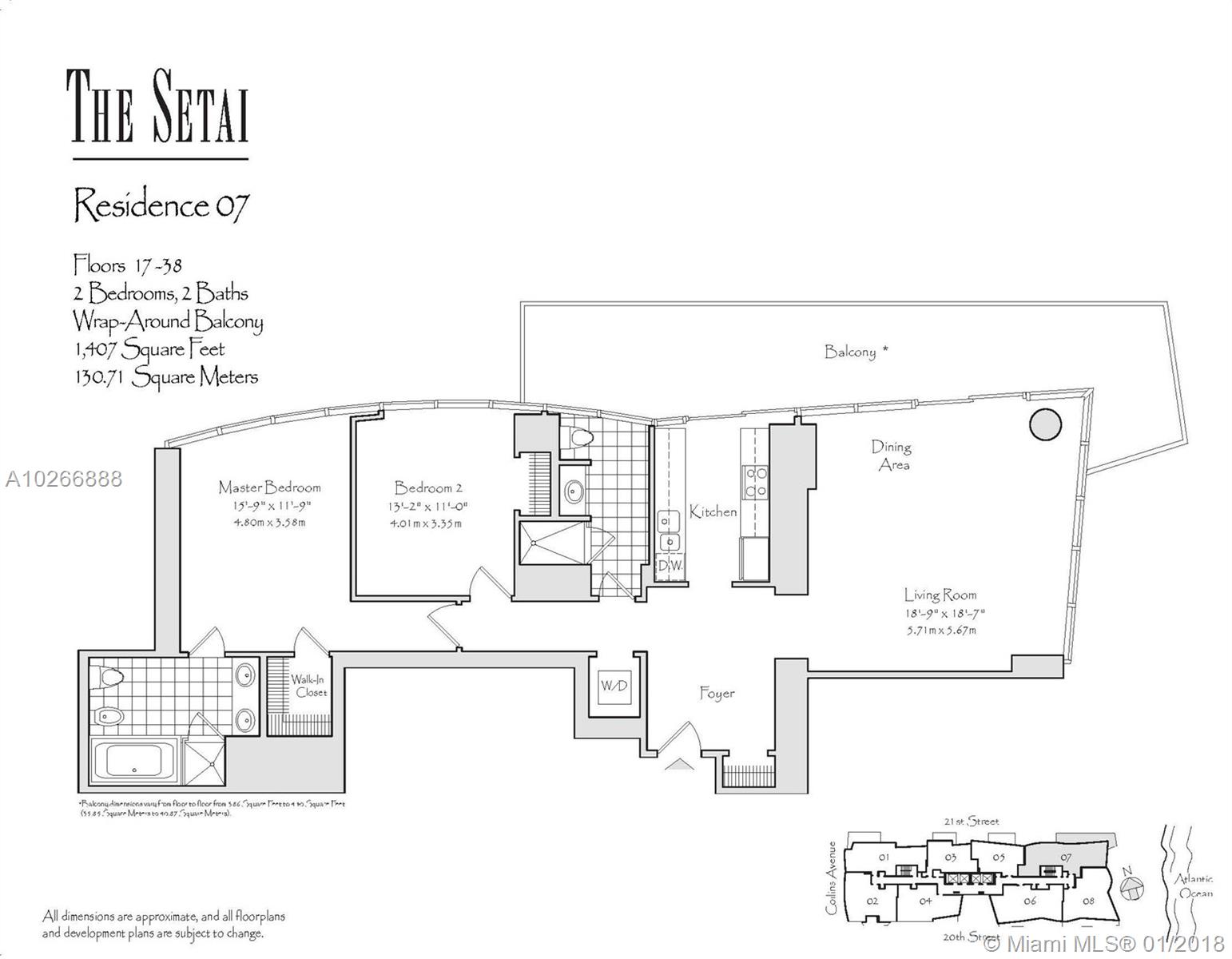 2 bedroom, 2 full bath, 1,407 sq. ft. condo is located in the The Setai Hotel. Direct panoramic ocean views. Wrap-around balcony. Sound proof windows and doors. Ocean Views from every bedroom! Teak and black granite floors in the hallways, kitchen and both bathrooms. Hardwood floors in the living room and both bedrooms. Master bathroom has granite countertops, a jacuzzi tub, 2 vanity sinks, and a separate rainfall shower. Guest bathroom has granite counter tops, a separate rainfall shower and a vanity sink.