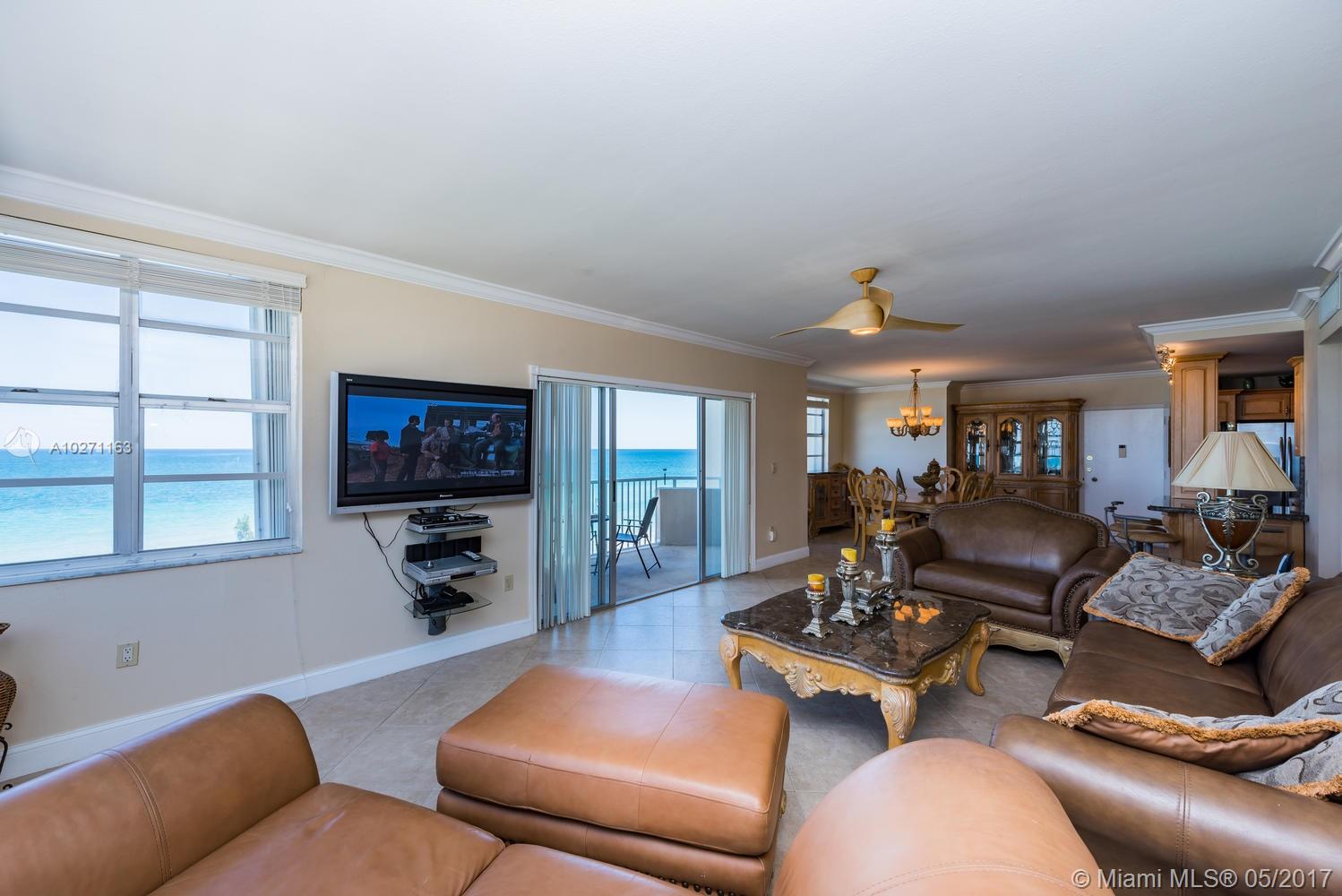 DIRECT OCEANFRONT 2 BR 2 BATH UNIT SMACK ON THE OCEAN! UPGRADED,SPACIOUS UNIT,MUST SEE! BEAUTIFUL OPEN KITCHEN WITH WOOD,GRANITE,STAINLESS APPLIANCES,UPGRADED BATHS, FLOORS, MANY EXTRAS.COMPLETELY RENOVATED WITH NOTHING TO DO! CUSTOM FEATURES, DOORS,CLOSETS ETC. MAINT INC'S A/C,CABLE,HOT WATER,PARKING,PLUS MORE! BEST COMPLEX ON HALLANDALE BEACH WITH SUPERIOR AMENITIES> OCEANFRONT SNACKBAR, 2 POOLS,2 GYMS,2 REST'S,MUSIC/DANCING /OUTSIDE DINING,BEACH SERVICE,TENNIS,BOAT DOCKS,SALON,CONV STORE,BBQ,PLUS AND A GREAT SOCIAL LIFE.RESORT LIVING ON A FULL TIME BASIS.