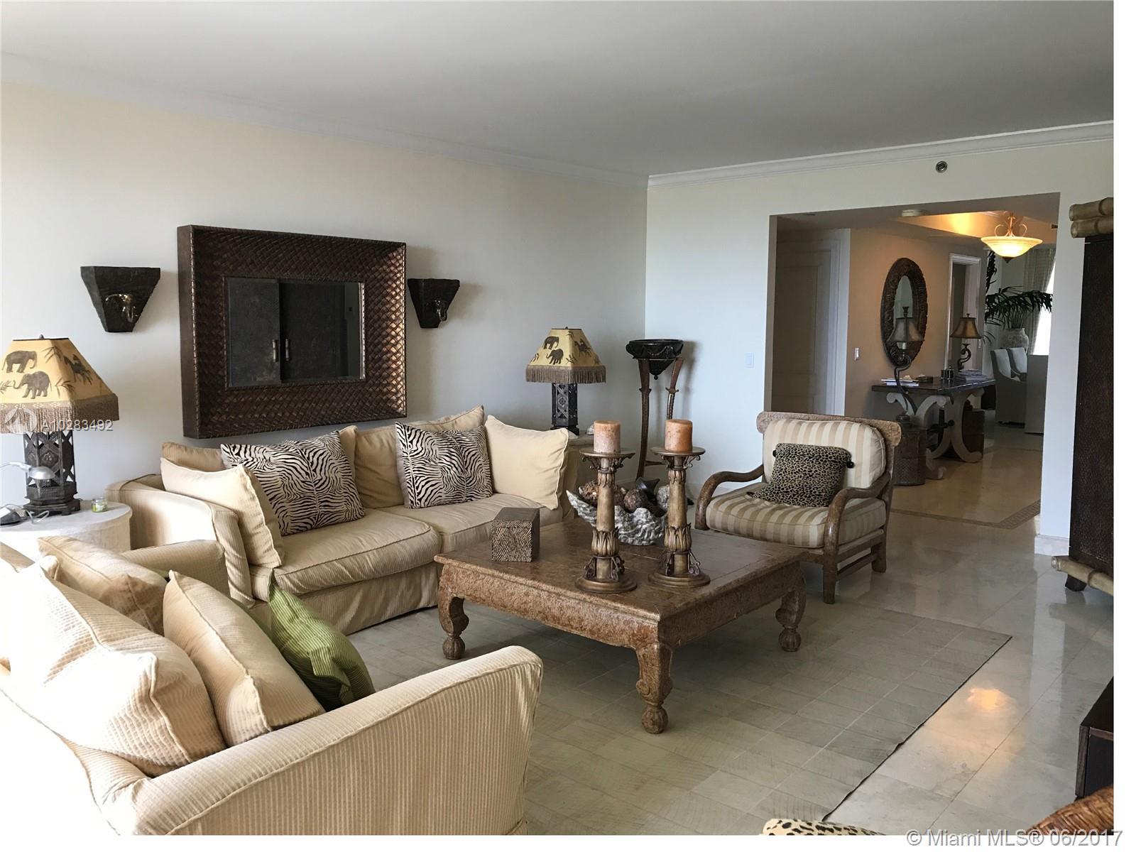 3 bedroom, 4.5 bath plus Housekeeper's room with direct views to the Ocean, Bay and Miami Skyline. Interior features Marble floors throughout Entertainment area. 2 covered parking spaces. Amenities include Clubhouse, meeting room, one gourmet restaurant, beach side bar & grill, pools, spa fitness, tennis & beach.