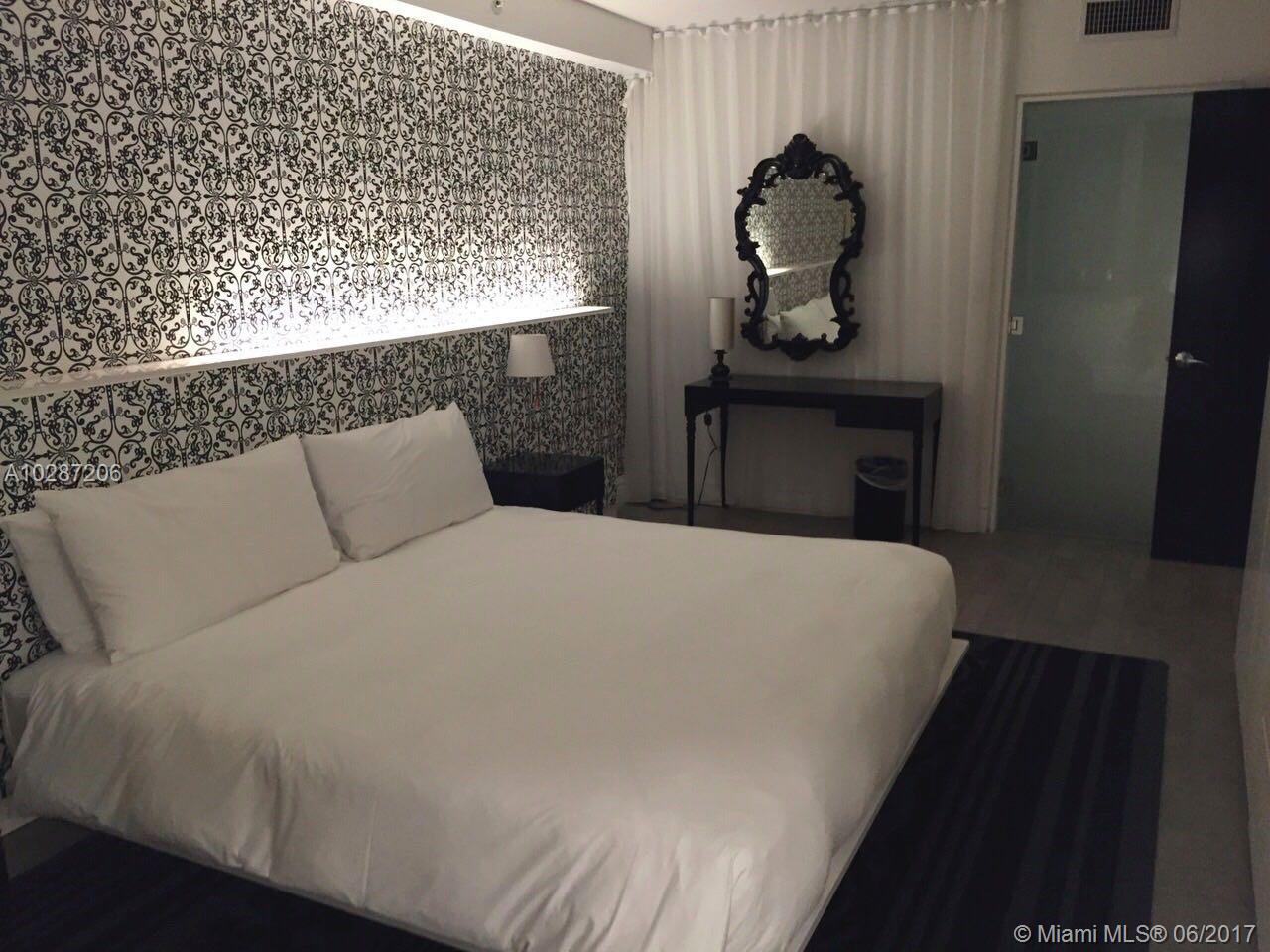 large 1 bedroom at mondrian hotel , separate masterbedroom with tv , living room with new sofa bed and other tv , kitchenette fully equipped , skyline view , laundry facility in the building , valet parking for free , maintenence include , pool , jacuzzi , gym , concierge, front desk , no in the hotel rental program , you can rent by yourself or sign the hotel program