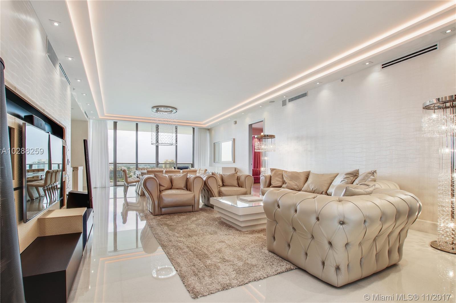SELLER VERY MOTIVATED! DRASTIC REDUCTION! ASTONISHING UNIT AT PRESTIGIOUS ST REGIS BAL HARBOUR. OPULENT DESIGNER FURNITURE FROM FINEST ITALIAN FASHION ICONS SUCH AS: FENDI, CORNELIO CAPPELLINI, LAMBORGHINI, HAMMER WOOD FLOORING, ROBERTO CAVALLI BATHROOMS AND SWAROVSKI CRYSTAL HARDWARE IN THE CLOSETS. L.E.D.-LIT ONYX COUNTER-TOPS, SOPHISTICATED CRESTRON SMART HOME SYSTEM. ALL OF IT GOES WELL IN TUNE WITH WORLD RENOWNED ST REGIS SERVICES INCLUDING SPA, FINE DINING, BUTLER SERVICES ETC. ALSO AVAILABLE FOR RENT. CHECK OUT 3D VIRTUAL TOUR AND VIDEO BELOW. SOLD FURNISHED. CALL NOW!!!