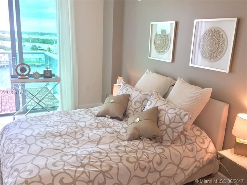 Recently furnished unit w/views of Biscayne Bay,1bed/2bath+DEN (den can be 2nd bedroom, it has a closet in it). INCREDIBLE VIEWS to marinas, bay and sunset!!! Large balcony. Floor to ceiling Impact sliding windows (9ft tall).SS appliances. Cooking island w/SS hood. Washer & Dryer inside. Eloquence is a young new building located in the beautiful North Bay Village, on a quiet dead-end street, surrounded mostly by low buildings & water. Full service condo. Minutes from Beaches. Equal Housing Opportunity.