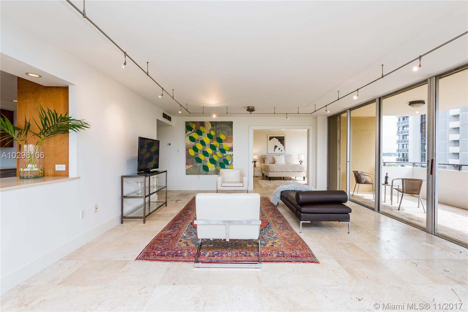 Spacious and full of natural light! Gorgeous bay and lush tropical treetop views from this luxurious updated Belle Isle-Venetian Islands 2 bedroom, 2.5 bathroom renovated corner residence. Bright, spacious, sophisticated open living/dining. Updated modern kitchen with sleek solid wood cabinets and quartz counter tops. Over-sized master bay-view bedroom suite with modern double-vanity master bath and large shower with subway tile. Spacious en-suite 2nd bedroom. Expansive entertainment balcony with bay and treetop views. Breathtaking views from building's private rooftop terrace. Amenities galore: spectacular waterfront restaurant, hotel style pool deck, boat slips, 24 hr concierge and valet, fitness center and sauna. Walk to Sunset Harbour, Lincoln Rd and Beach. MUST SEE VIRTUAL TOUR VIDEO.