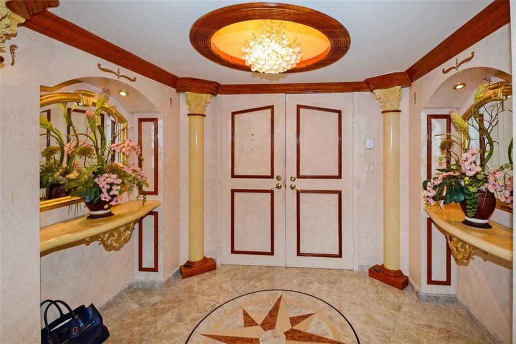 $100k PRICE REDUCTION. Luxury Beachfront Life. Enter this spectacular 3-BR oasis through double doors to spacious foyer w/crystal chandelier. Elegance abounds in tastefully finished unit. Every detail has been attended w/thoughtful design elements adding organization & efficiency to your life. This magnificent unit truly feels like a private home with east & west exposure, expansive living area & suite bedrooms. Open chef's kitchen w/built-in breakfast table & granite countertops. Custom woodwork. Pets OK