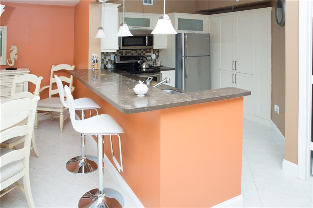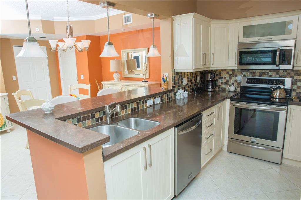 This completely remodeled unit offers fantastic views of the bay and Intracoastal. The new open kitchen has stylish white cabinets, ss appliances, solid surface breakfast counter for casual dining - opens up to the living room and dinning room. The unit boasts a spacious guest bdrm and Master bdrm with plenty of space. Garage parking. Impact Windows. W/D in the unit. Steps to beach, shopping & restaurants. The building offers modern amenities, including gym, heated pool, yoga room, business center.