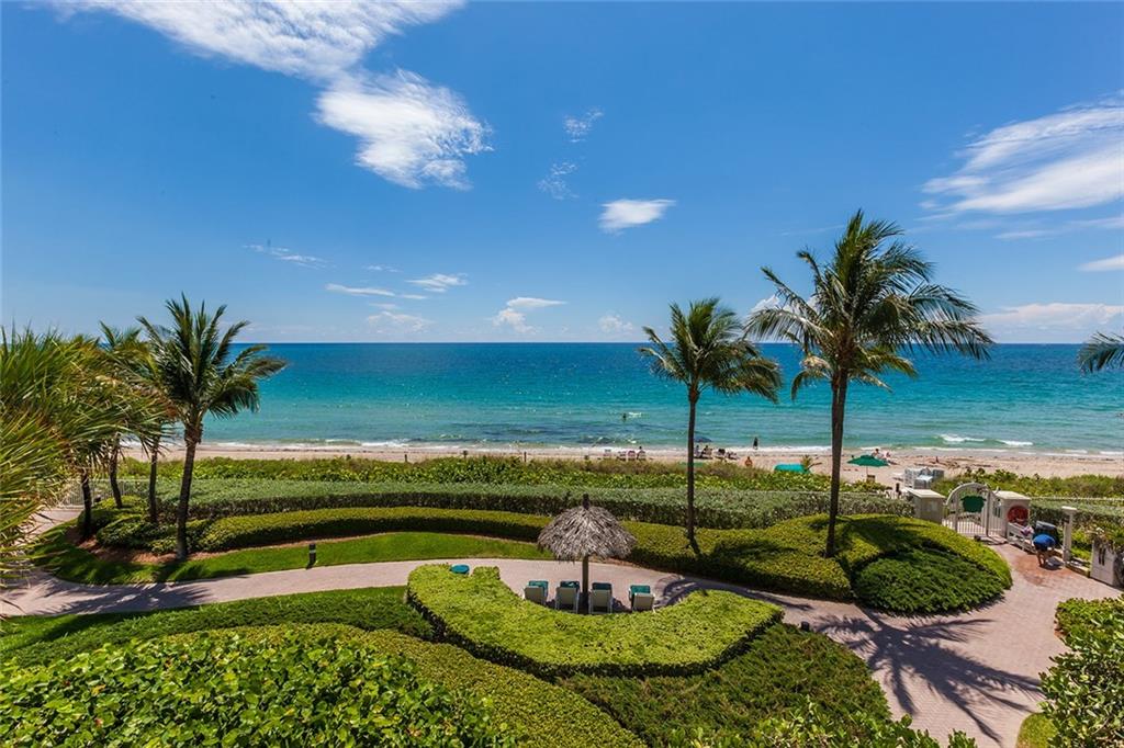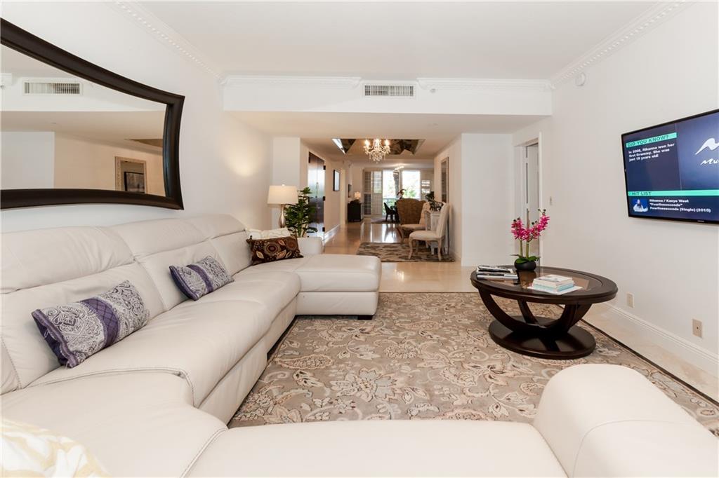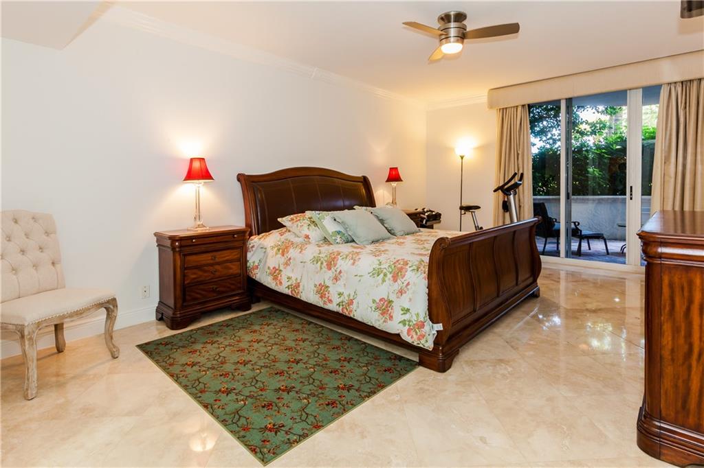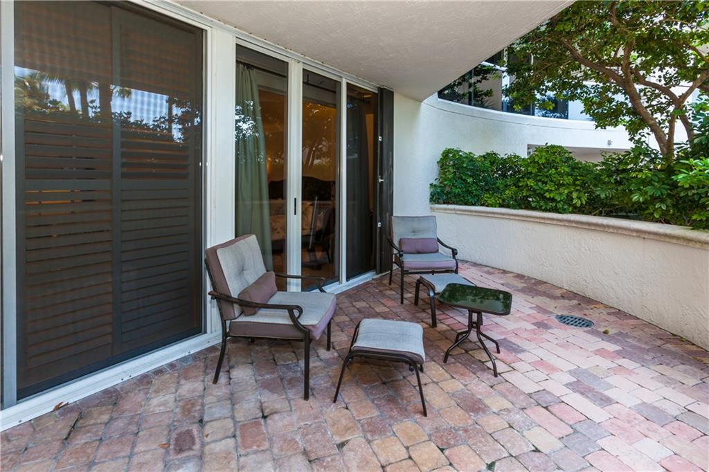 MAGNIFICENT RESIDENCE | EXPANSIVE TERRACE | POOL LEVEL. Immaculate and modern unit featuring travertine marble floor, solid wood cabinets & doors. Expansive Patio in Private Garden Oasis, perfect for outdoor living with captivating ocean breezes, just a few steps from the resort-style pool, enchanting gardens & the beach. Designer light fixtures, top-of-the-line appliances. 1 Parking space & storage unit. 10 Acres of resort-amenities w/tennis, cabanas, 2 pools, cafe, 24hr security, & valet.