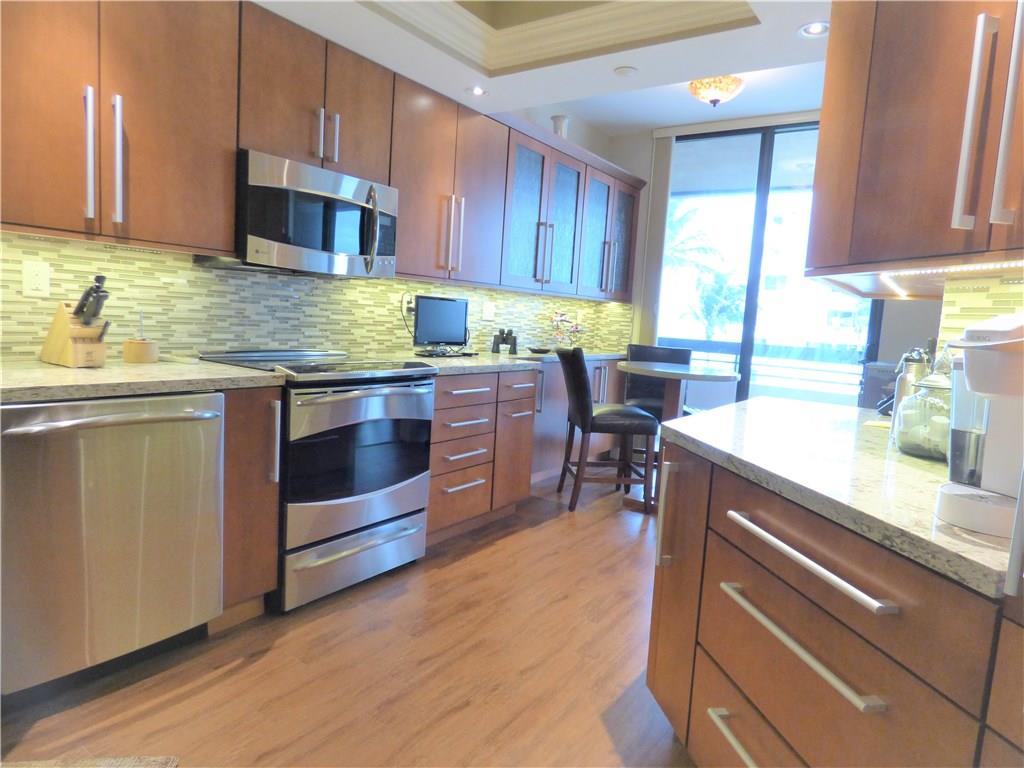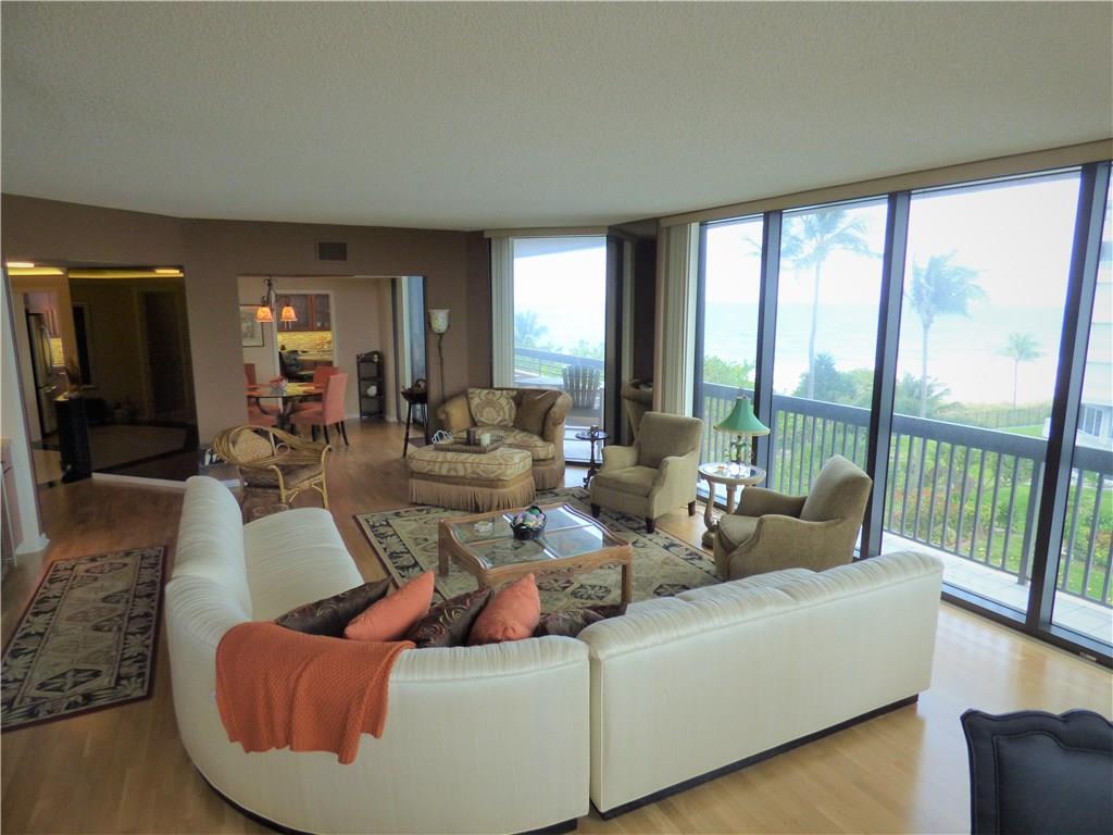 This beautifully furnished & updated apt offers appx 3200 sf of space including the wraparound balcony w/ 2 patio areas for relaxing or entertaining. Enjoy the ocean views & breeze & the nice pool views. Kitchen offers all stainless appliances, granite countertops & eat-in breakfast area in addition to formal dining room. Custom walk-in closets, including 2 in master bedroom. Wine cooler in living room wet bar, 9-ft ceilings, impact windows & shutters. Only 46 units total w/ many amenities. Small pets ok.