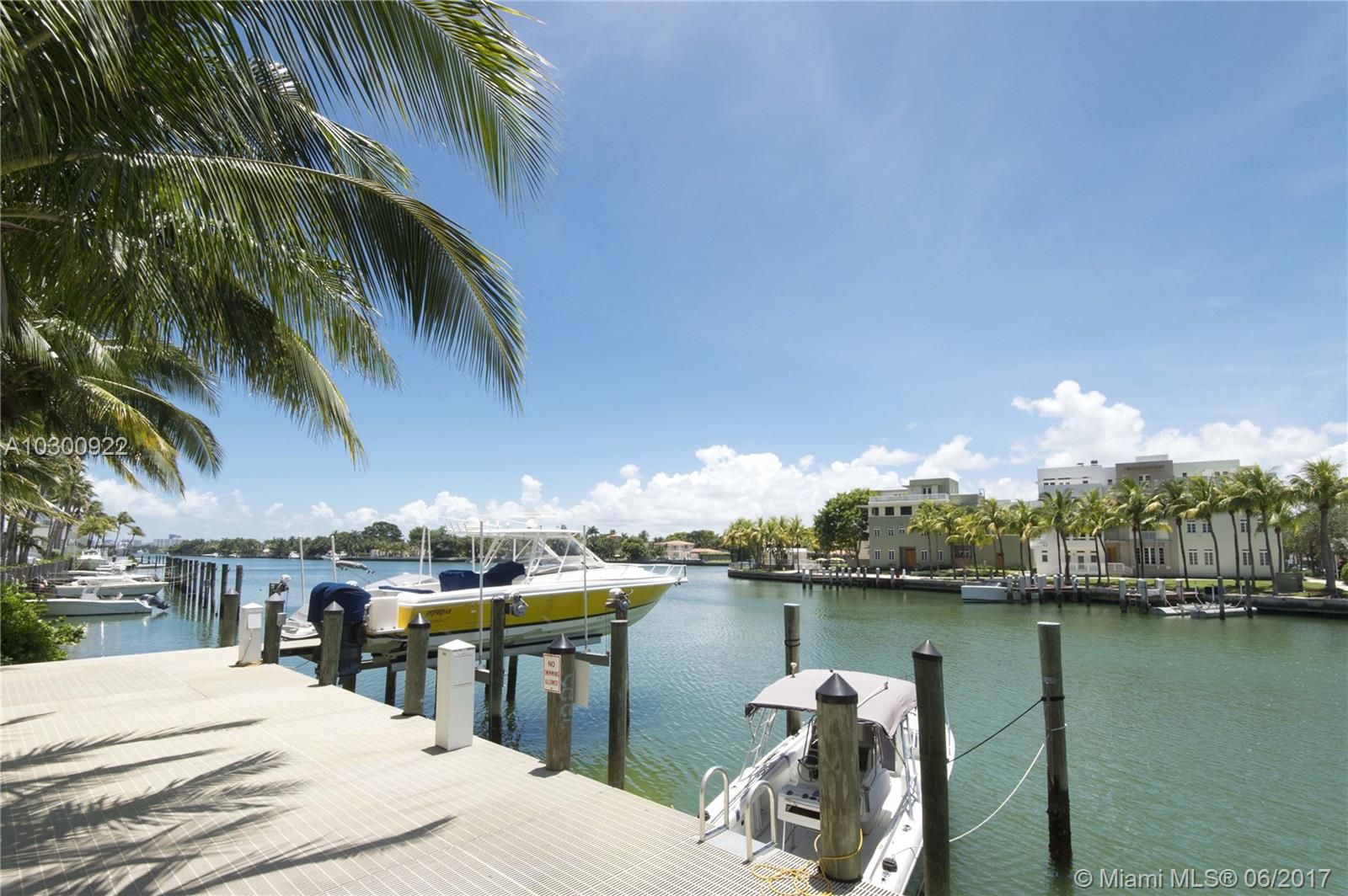 Spacious 2 bedroom + den waterfront condo, with water views from both bedrooms, living room and kitchen. Iconic Miami sunset views over the downtown skyline. Located just across from the beach and prestigious Millionaire's Row. Hardwood floors throughout, high ceilings, and Euro kitchen. Quiet boutique building walkable to dining and Publix, and moments from Bal Harbour Shops. Dockage available directly behind building. Pool, Gym and Sauna.Video cameras on location!