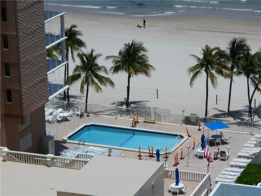 Over sized 2/2 with balcony in building right on the sand. Light and bright, great ocean, city and Intracoastal views. Impact glass windows, accordion shutters on balcony. Like-new stainless appliances. Master bedroom has 2 walk-in closets plus a large linen closet. Guest bedroom is large enough to fit 2 double beds plus furniture. Formal dining room plus breakfast area. Utility room with washer/dryer in unit. 24/7 security guard, fitness center, pool, spa, BBQ, party room. Furniture stays.