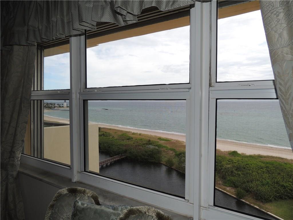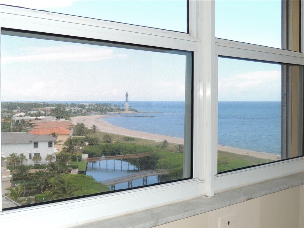 Beach living at it's best!This immaculate 2 beds/2 baths corner unit offers amazing unobstructed views of our beautiful ocean and Lighthouse from every window! This unit features a spacious living/dining area, impact windows, foyer entry, updated kitchen and bathrooms, covered parking right by the entrance and low maintenance fees. Tiffany Gardens offers many amenities including a private beach access, community pool, shuffleboard, clubhouse and laundry facility. Minutes from Greg Norman Golf Course!