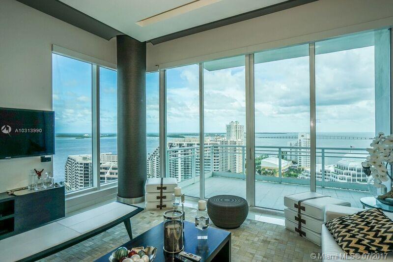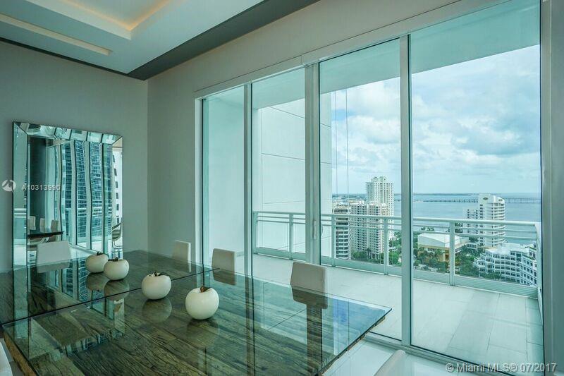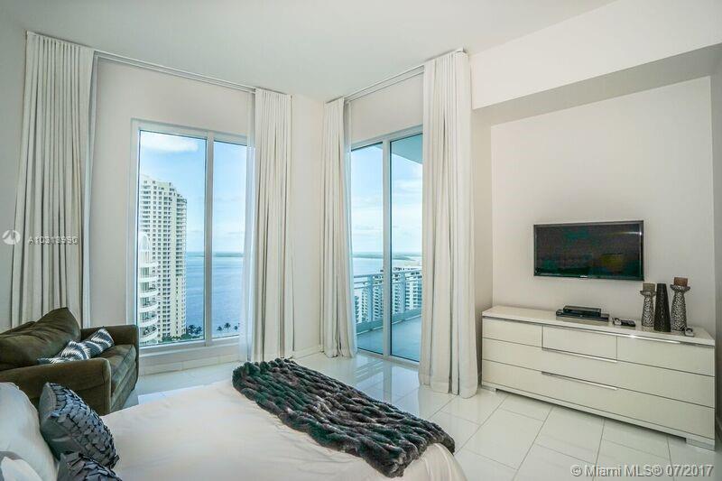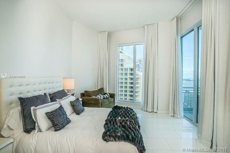 Arrive into your foyer from your private elevator. Immerse yourself into water and whimsical City views from every room of this exquisitely and professionally designed residence with soaring 12 feet high ceilings. Marble floors, floor to ceiling windows, three private balconies, Chef's style kitchen, marble bathrooms, three en suite bedrooms and fourth bedroom is a guest/office, California closets and much more. Enjoy the urban lifestyle while having your residence in the acclaimed Asia Condominium in Brickell Key. Allow 24 hours for showings