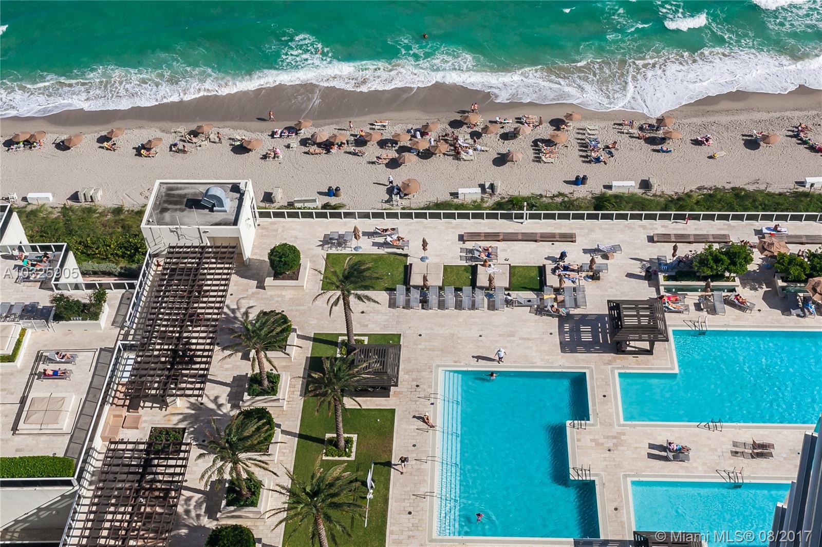 Beautiful corner unit 2 bedrooms, 2 baths, designer finishes, panoramic ocean views, NE/W exposure and porcelain and wood floors throughout. Resort style amenities. European style kitchen, Kitchen Aid Appliances. Infinite edge pools, full service spa, 50,000 Sq. ft. fitness center overlooking the ocean, regular exercise classes, restaurants, pool and beach service, valet and concierge.