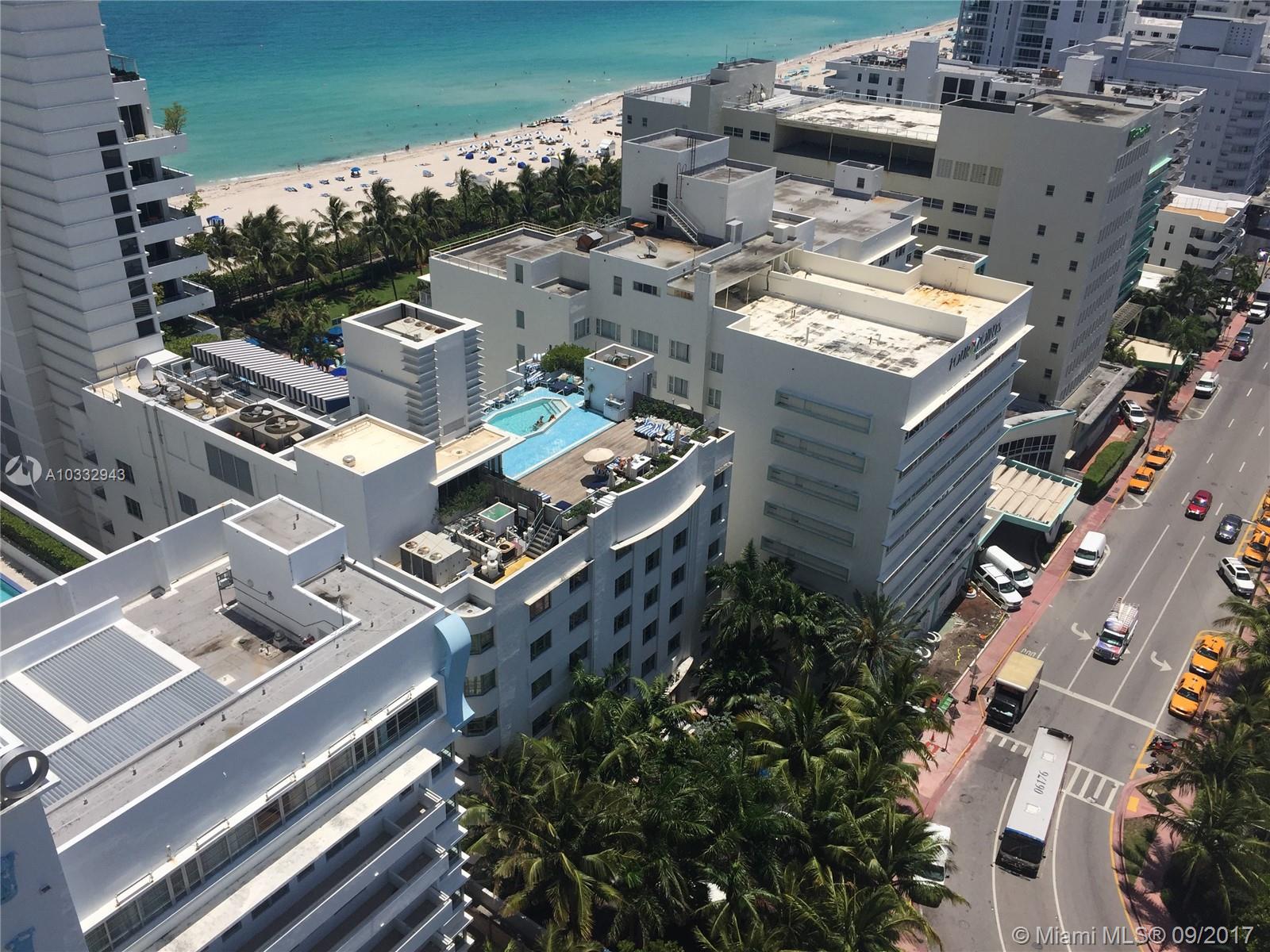 Beautiful and bright modern condo/hotel Penthouse studio apartment in the heart of South Beach steps to the ocean and restaurants. Enroll in hotel rental program & receive income while away! Features: Queen bed, marble floors throughout, kitchenette with sink, microwave and mini fridge, counter with stools, large master bathroom with jetted shower and a half bathroom. Enjoy the sunshine and views from the balcony which overlooks the pool and has a partial ocean view. Indulge yourself in the penthouse’s private rooftop Jacuzzi and wet bar with a sitting area.