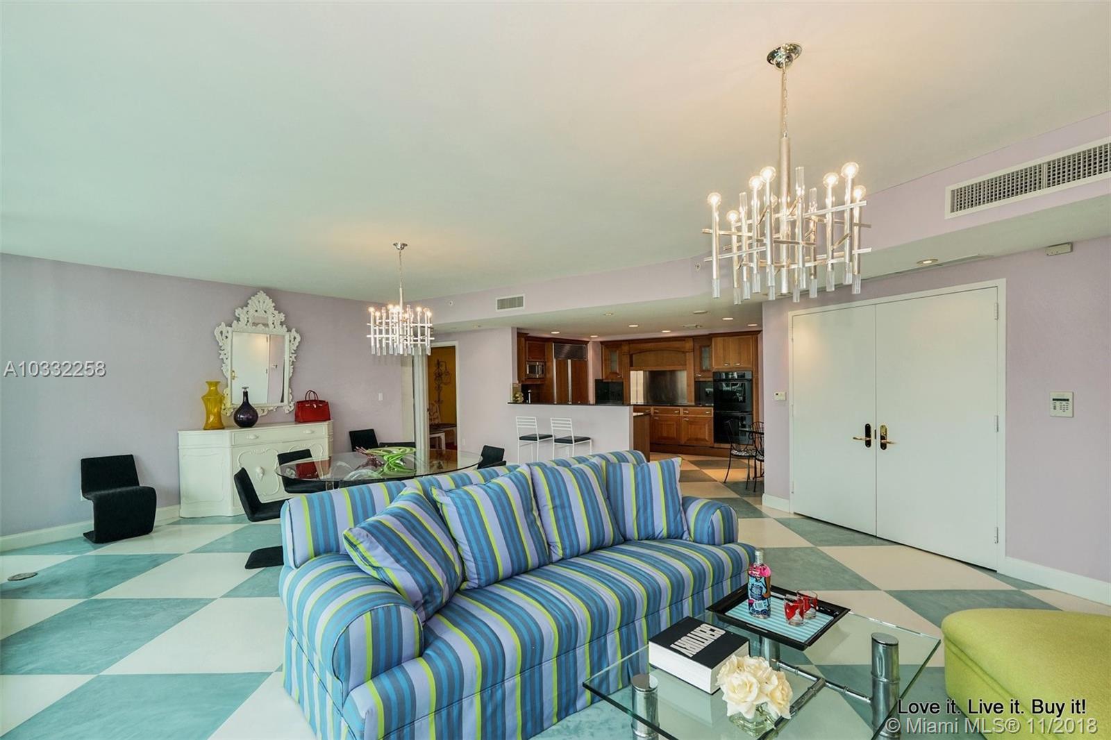 One of the happiest brightest apartments I have ever been in. Whimsical and fun, it's impossible to wake up grumpy in this unit. The views of the gardens, and Turnberry's golf course and lake are certainly charming and relaxing. This two bedroom was remodeled to offer a third room that can be used as an office or small child's room. Located on the 6th floor, easy to walk up and down from. On the fourth floor or mezzanine of the North Tower there is a small business cafe offering daily newspapers and T.V. The North Tower also offers it's own barbecue that will be turned on for you and cleaned up after you use it. There is an added dogie park so that your pet can mingle with other community pets. And of course, there is Porto Vita. The most luxurious neighborhood in Aventura!
