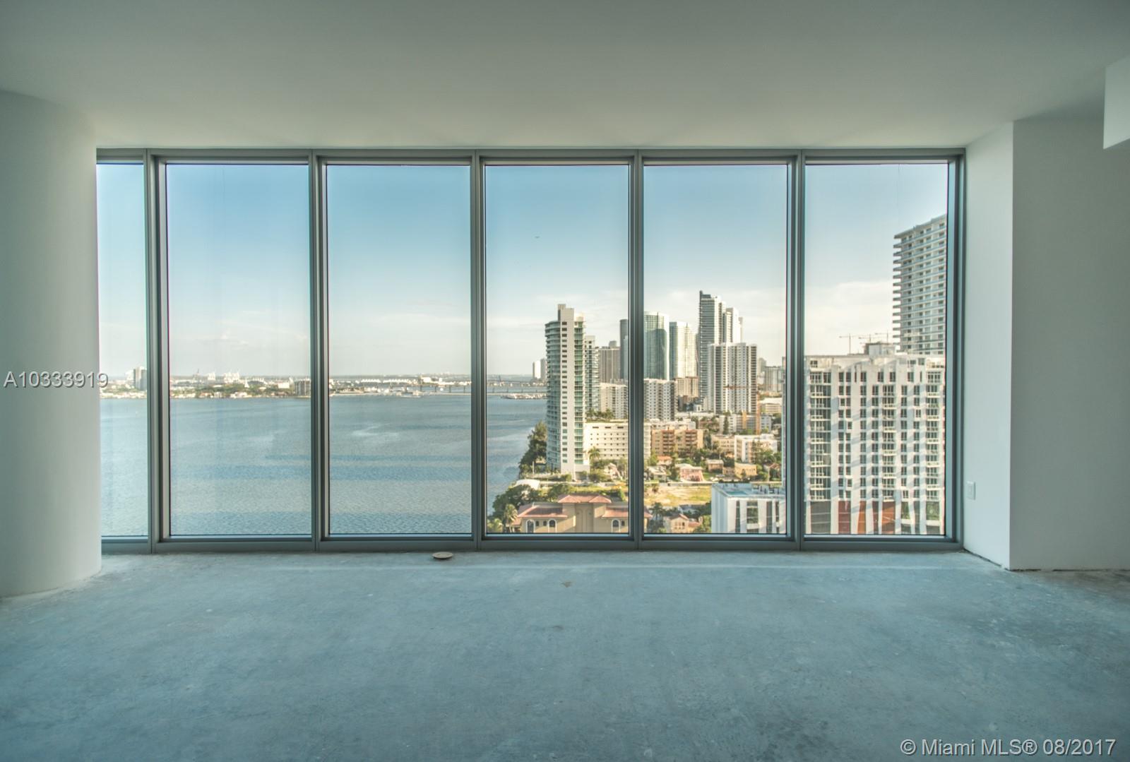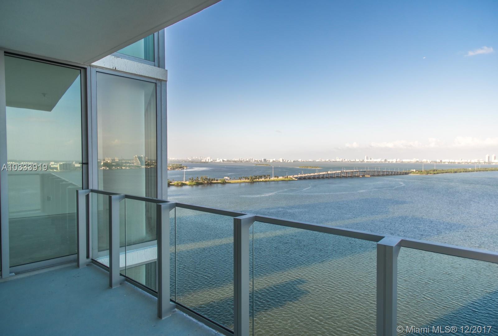 Located directly on the bay in Edgewater, this amazing high-floor corner unit at the newly-developed Biscayne Beach is one of the best deals in the area. Exit the elevator directly into your residence; the first thing you'll notice is that the south and east walls of this unit are made up of floor-to-ceiling windows, so the exotic views of the city and bay are visible from almost anywhere in the apartment. The split bedroom floor-plan provides complete privacy for everyone. Each bedroom is a suite with an impressive city and bay view. This apartment has many luxuries you won't see in many new-construction units including a formal dining room, full guest bathroom, and separate laundry/cleaning room. 5 star amenities include a water-front beach-themed pool area with cabanas, and a new gym.