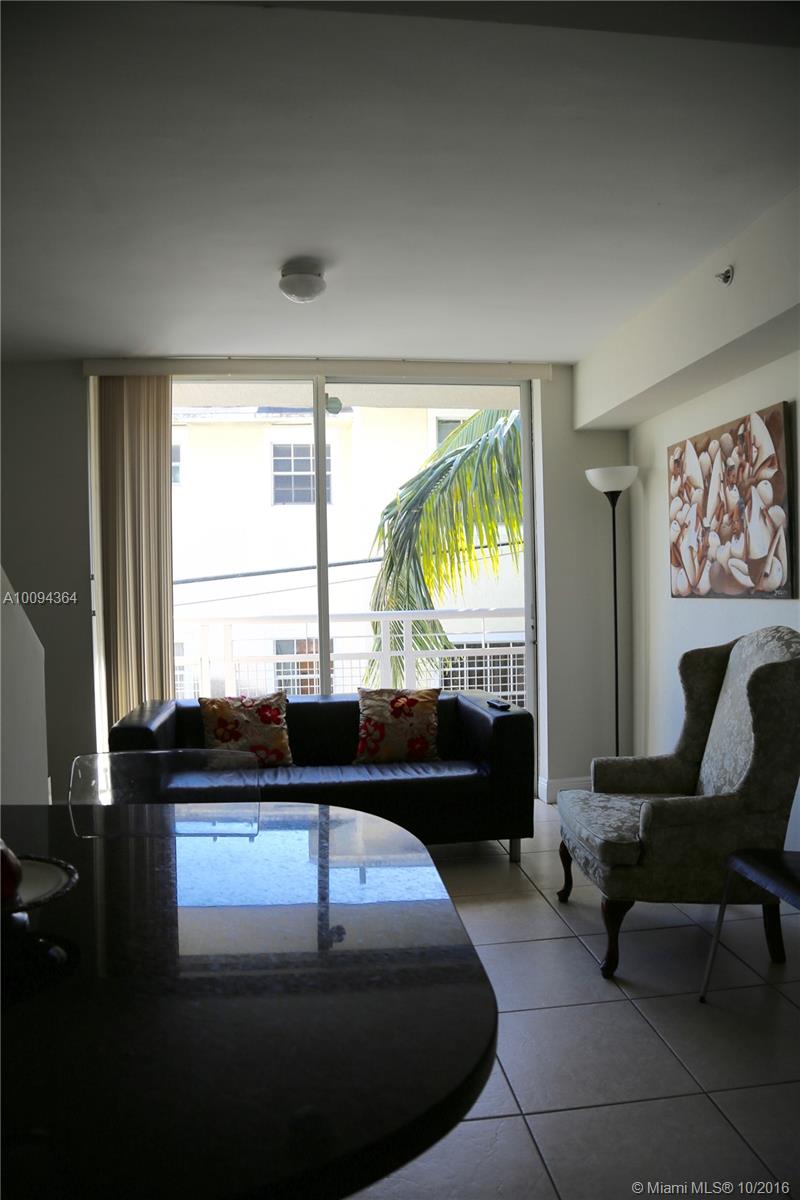 Modern 2-story apartment gated building with renovated kitchen, granite countertops and stainless steel appliances. Half bath and family room downstairs. Den/office upstairs with master bedroom, skylight and walk-in closet. ceramic tile throughout apartment and balconies. Great views of Miami skyline from two balconies. Conveniently located near Downtown and Brickell. Apartment has plenty of closet space. Full size washer and dryer in unit. 1 covered parking space. CASH ONLY!