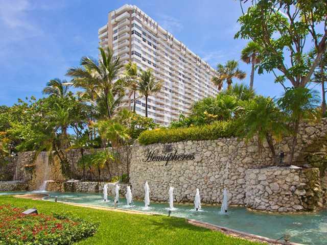 1 bedroom 1 bath unit with south exposure and views of the ocean and intracoastal located at the Hemispheres oceanfront complex on Hallandale Beach. Mtce includes a/c, cable, water & 1 parking space. Complex has 2 pools, access to the beach, marina, res taurant, mini mart, snack bar, tennis courts, courtesy bus, beauty salon and lots of amenities.