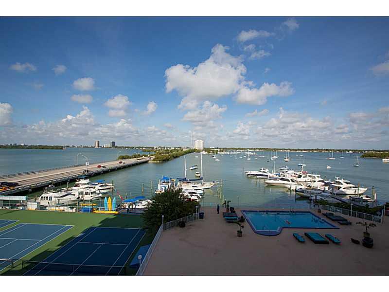 Amazing Downtown and wide bay, water views from the moment you open the door to this spacious and well appointed studio unit with a balcony! Building amenities include a HUGE, newly resurfaced, heated pool, marina, paddle board and kayak rentals newly res urfaced tennis courts & fishing dock. The unit is all tile w/ newer a/c, stove, toilet, and bath tub. Building is located on the charming Island of North Bay Village, which is it's own little wonderful city! Close to beach ,HWY, dinning and shopping!!