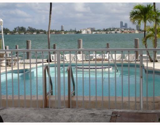Great price for a spacious second floor (top floor) 1BD/1BA unit in waterfront MIMO style 1950's garden 20-unit complex in North Bay Village. Courtyard w/ pool overlooking wide bay with spectacular views! Street parking, on-site laundry, pets allowed for owner-occupants. Conveniently located to beach and Biscayne Corridor. Perfect for investor or for end user. Maintenance fee and reserves paid quarterly which comes to $286/month.