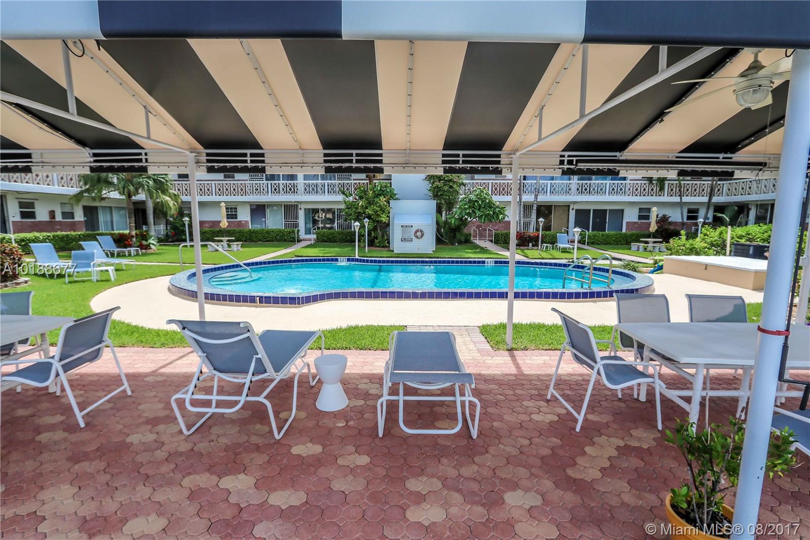 Conveniently located, close distance to boardwalk, restaurants & Hollywood beach. 2 bedroom, 2 full bath unit w/partial views of the intra-coastal. This unit is available fully furnished. Corner unit w/lots of windows. storage available, low maintenance, heated pool, shuffleboard and barbecue area, facing inter-coastal. Master BR feature walk-in closet. This small community has a total of 49 units, making this a very unique lifestyle. Short drive to downtown Hollywood & Hollywood Ft. Lauderdale airport.