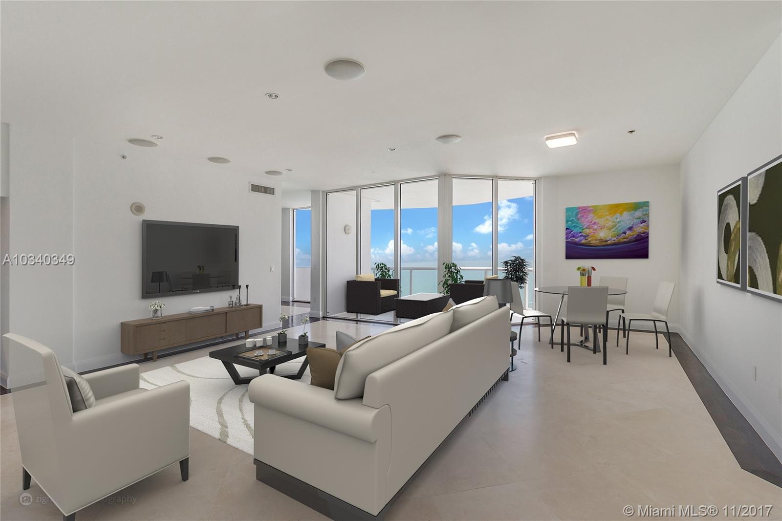 UNIQUE 46/47th FLOOR BANK OWNED TOWER SUITE FOR SALE. Exquisite Akoya Condo Penthouse. A Rare REO offering with 2 Penthouse Levels, 2 Expansive Balconies, 2 Deeded Parking Spaces and 2 On-Suite Bedrooms / Bathrooms with Large walk-In Closets. Located on the 2 Top Floors, and the Tallest Building in North Beach area of Miami Beach, the Tower Suite Offers the best views and luxury for North Beach. Truly Unobstructed Panoramic Views of the Ocean, Bay, Miami Beach and Down-Town Miami from 46 / 47th Floors. Luxury Interiors with European Designer Kitchen by Salvador Kitchens, Stainless Steel, GE Monogram Refrigerator and Granite Counter-tops. Other Features Include Floor-to-Ceiling Glass Windows and Doors and Wood / Marble Floors. Seller will Pay 3 years of Condo Fees at closing for Buyer.