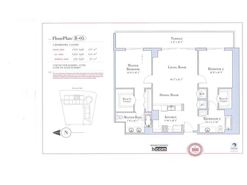 Spacious luxury 2 bedrooms in the great 1800 Club on Biscayne Bay. MAGNIFICENT DIRECT BAY VIEW, enhanced by a ULTRA LARGE BALCONY. Very convenient split floor plan. Two bedrooms have access to the large balcony via floor-to-ceiling glass doors. A Lot of l ight but no direct afternoon hot sun. Located next to Margaret Pace Park, this is a quiet neighborhood, but very central. You'll walk or stroll around the park, chill at the large pool, or exercise in our top gym.