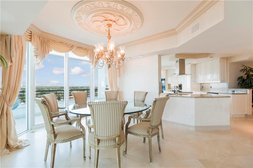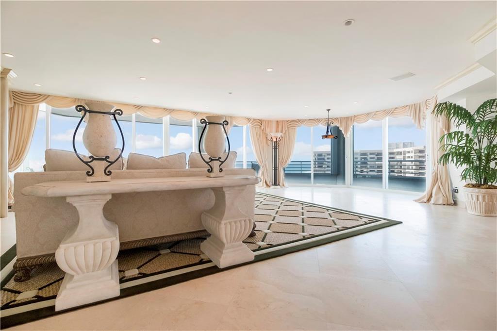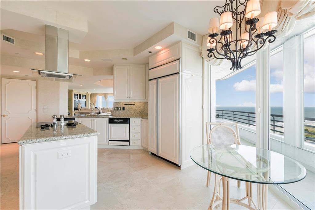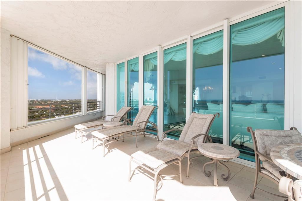 Enjoy stunning direct ocean, city and Intracoastal views from this 3BR/3BA/3200sf SE corner unit w/ 800sf wrap around terrace. Top of the line kitchen w/granite counter tops and wine cooler. 2 master suites with en-suite bath and huge walk-in closets. Floor to ceiling impact glass. Only 4 units per floor, semi private elevator. 2 garage parking spaces. Amenities: 24hr security, fitness center, pool, spa, sauna, tennis, billiards, party room with full kitchen & poolside grills. Pet friendly bldg.