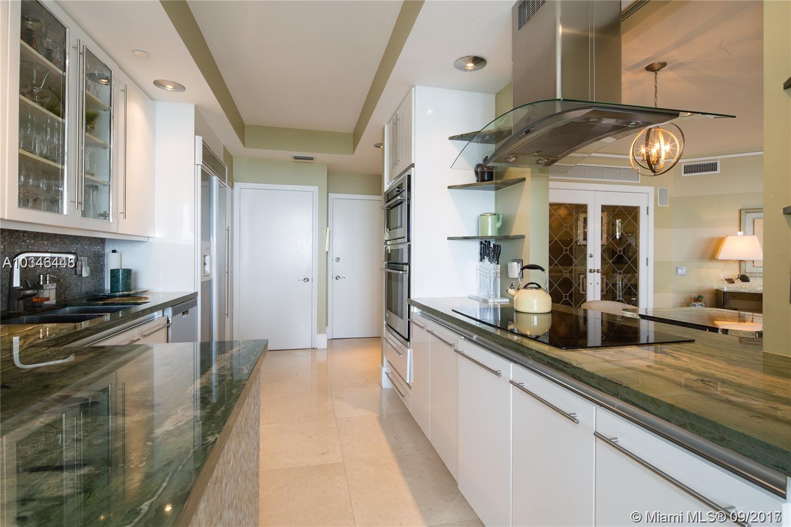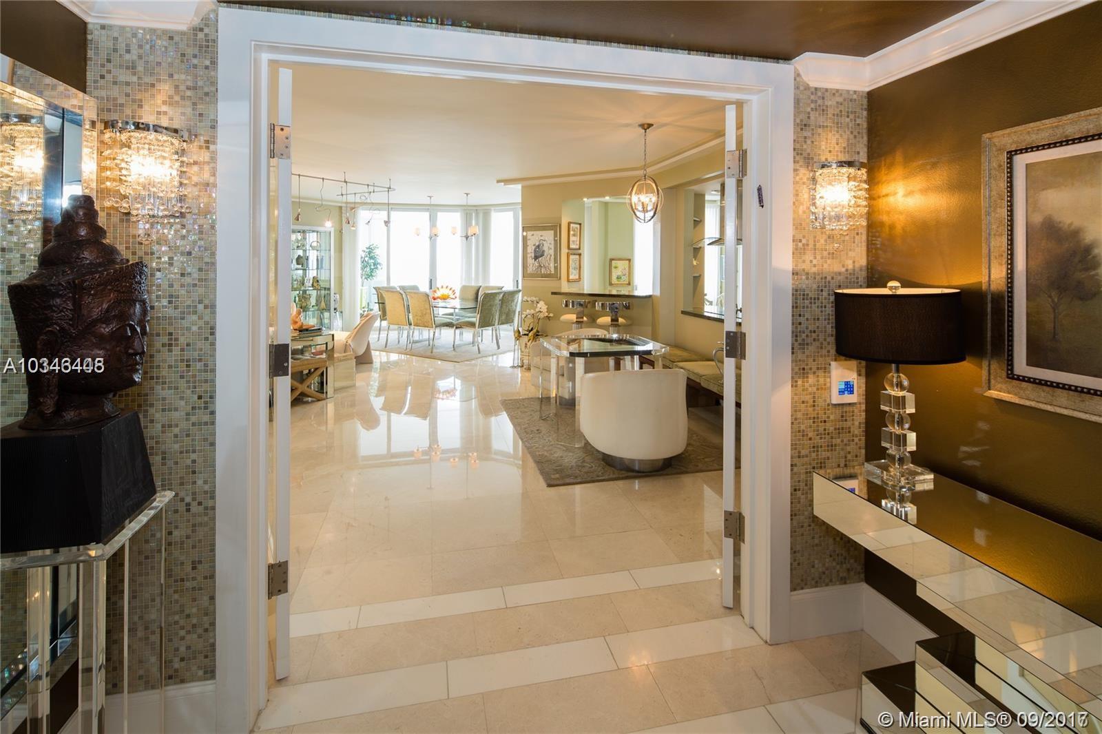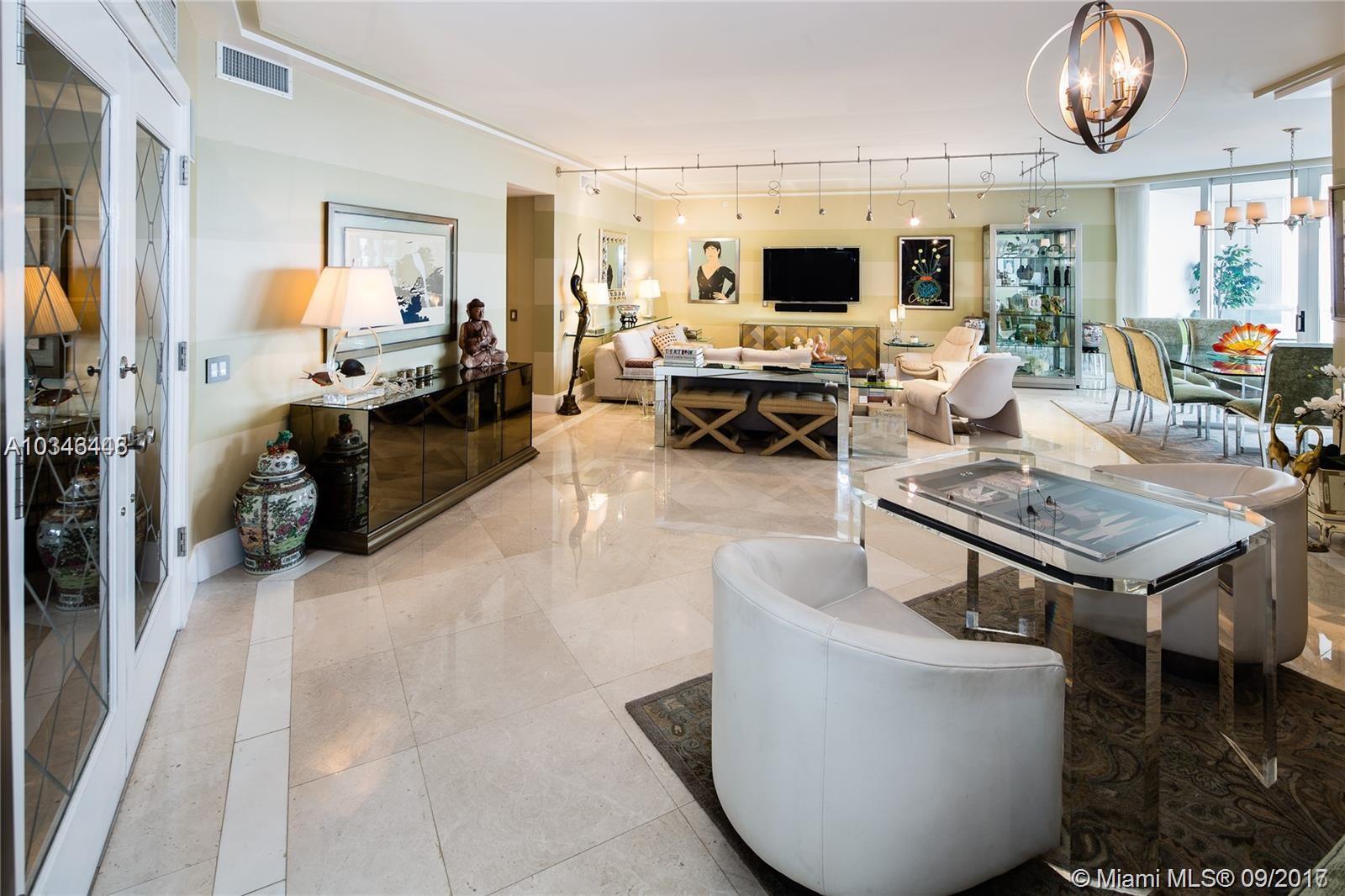 ONE OF A KIND. PRIVATE ELEVATOR LEADS DIRECTLY TO THIS CUSTOM 3BD, 2.5BA RESIDENCE. 2,630 SF OF LIVING SPACE + 2 BALCONIES & WATER VIEWS BOTH NE & SE IN THIS FLOW-THRU PLAN. UNIT HAS MARBLE FLOORS THRU-OUT, WOOD IN BEDRMS. HURRICANE SHUTTERS. UPDATES: OPENED KITCHEN WALL TO LIVING AREA, GRANITE COUNTERS, APPL INCL 5 BURNER INDUCTION RANGE, 2 RENOVATED BATHROOMS, HUNTER DOUGLAS BLINDS, CLOSET BUILT-INS, NEW A/C UNITS, ETC. 2 SPACES IN GARAGE, STORAGE, VALET, 24-HR SEC, TENNIS & RENOVATED SPA/FITNESS CENTER. 3 SWIMMING POOLS.
