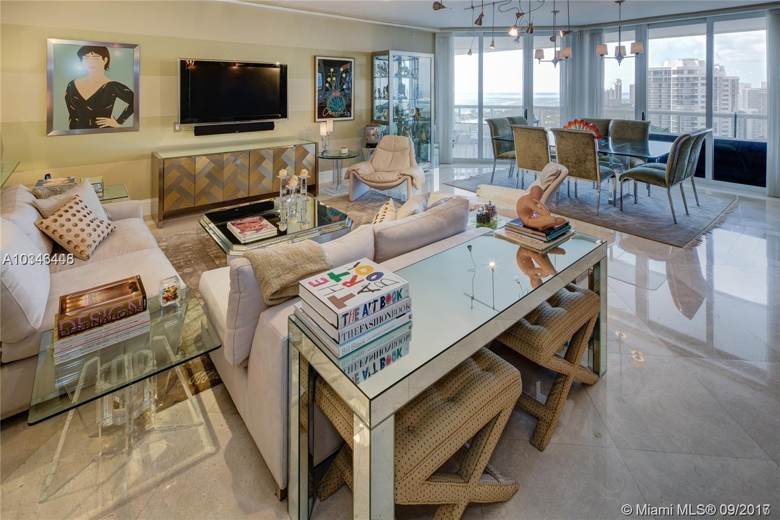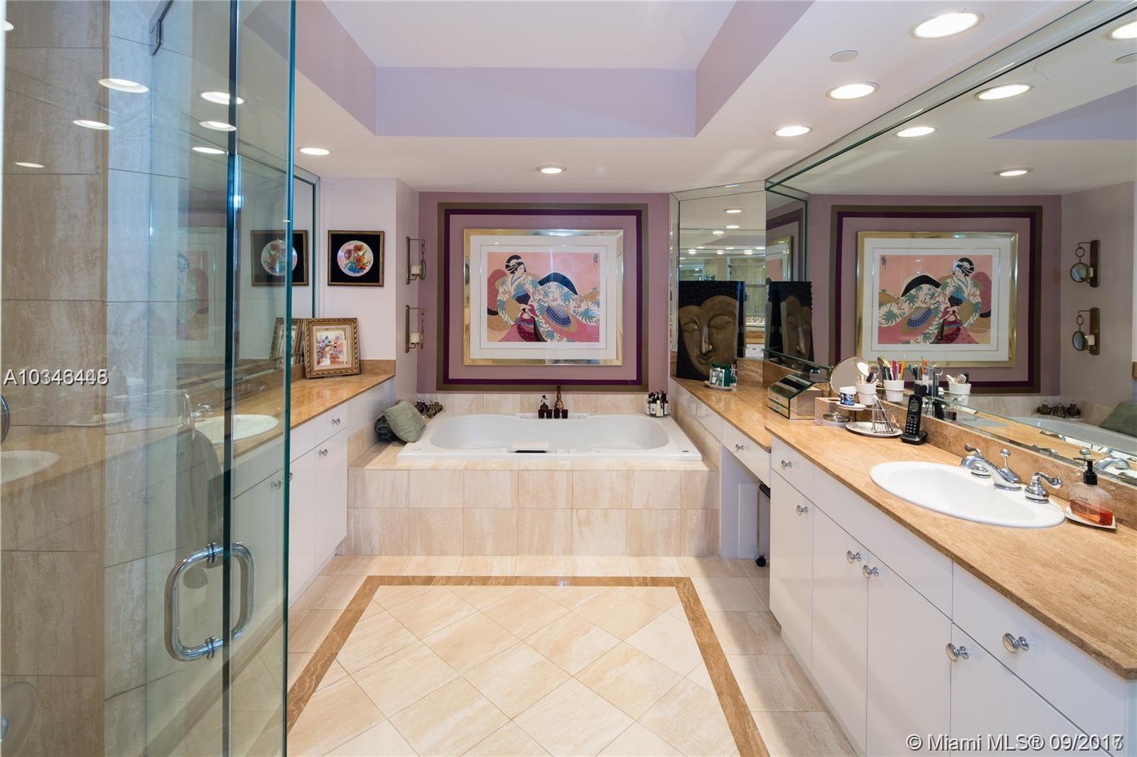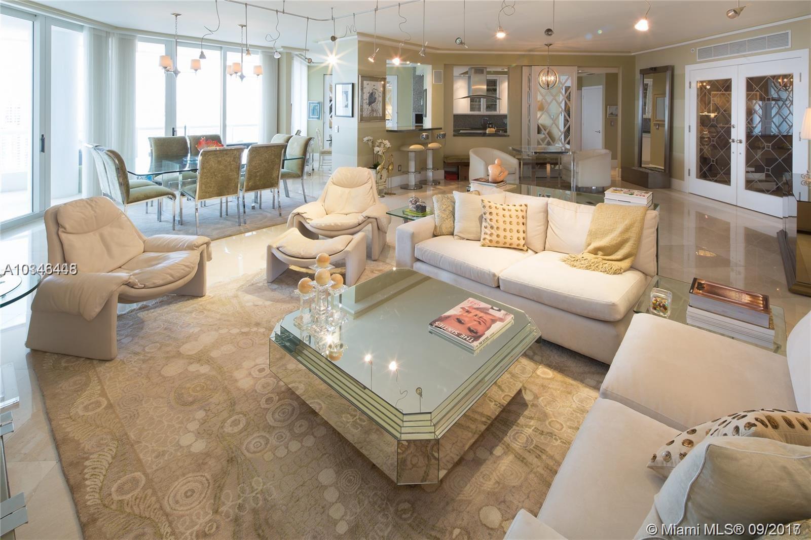 ONE OF A KIND. PRIVATE ELEVATOR LEADS DIRECTLY TO THIS CUSTOM 3BD, 2.5BA RESIDENCE. 2,630 SF OF LIVING SPACE + 2 BALCONIES & WATER VIEWS BOTH NE & SE IN THIS FLOW-THRU PLAN. UNIT HAS MARBLE FLOORS THRU-OUT, WOOD IN BEDRMS. HURRICANE SHUTTERS. UPDATES: OPENED KITCHEN WALL TO LIVING AREA, GRANITE COUNTERS, APPL INCL 5 BURNER INDUCTION RANGE, 2 RENOVATED BATHROOMS, HUNTER DOUGLAS BLINDS, CLOSET BUILT-INS, NEW A/C UNITS, ETC. 2 SPACES IN GARAGE, STORAGE, VALET, 24-HR SEC, TENNIS & RENOVATED SPA/FITNESS CENTER. 3 SWIMMING POOLS.