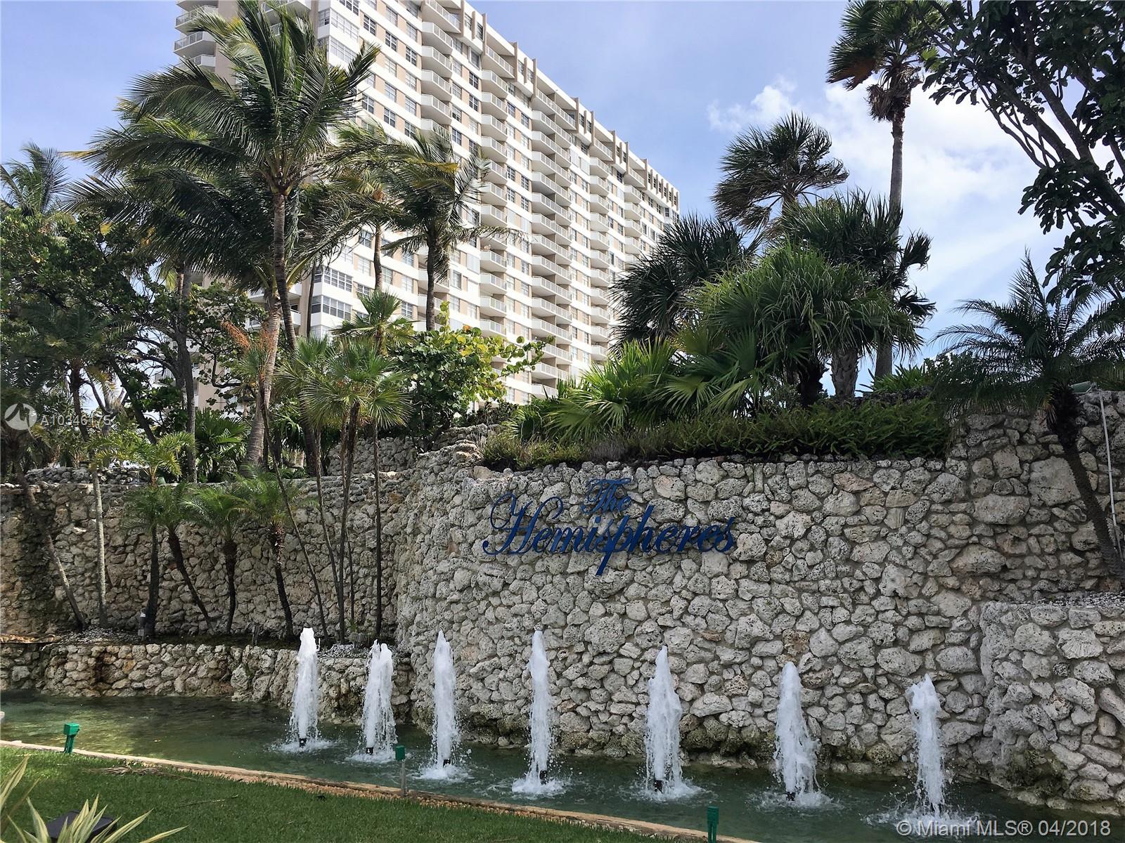 HEMISPHERES OCEAN FRONT, SPECTACULAR OCEAN VIEWS facing south, 1 Bedroom, 1.5 Bath newer kitchen, laminate floors, air conditioning and basic cable included in the maintenance with resort style amenities, 24 hr security, valet, 2 heated pools, Beach lounge service, Beach snack bar, 2 upscale restaurants, Tennis courts, Basketball court, golf putting, Billiard rooms, child pool & play area, mini-mart, Hair Salon, Exercise Facility, Marina dock avail, Easy to show Listing agent lives in complex
