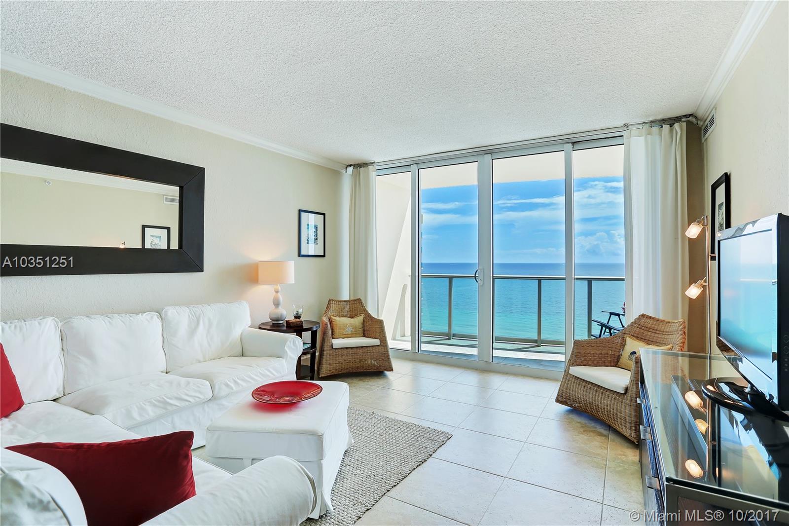Fall in love with a breathtaking direct ocean views! Rarely available bright and spacious residence with incredible views from 15th floor ready for a right buyer. Condo tastefully redone with an elegant new kitchen, stylish glass tile bathroom, large walk-in closet, tiled floors. Fully equipped and tastefully furnished. Great amenities: Resort style pool deck with lush palm trees, Jacuzzi, GYM overlooking the ocean and complimentary Beach services. Pet friendly building