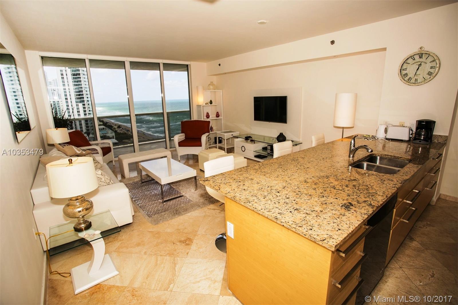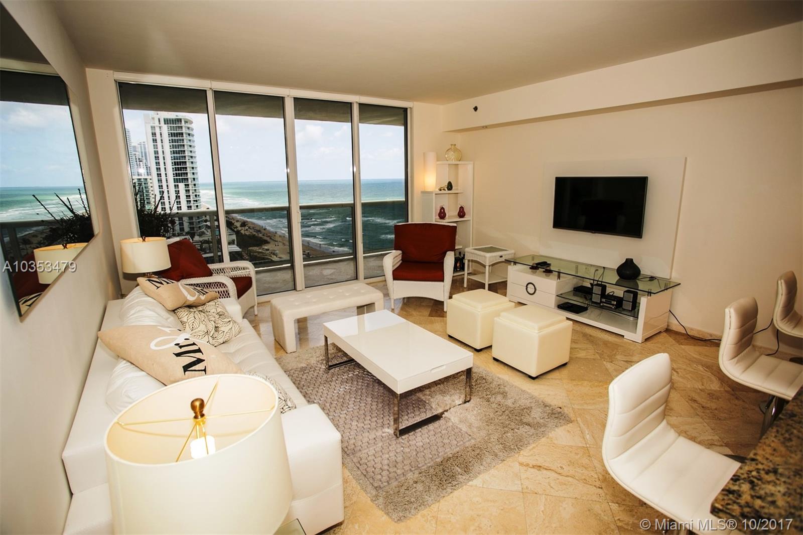 Leased until 4/12/18 for $3600/mo. Gorgeous 1/1 unit with direct ocean view in an elegant luxury building, open balcony that overlooks the pool area, marble floors, granite counter tops, open concept, high impact resistant windows, washer & dryer inside, large fitness center with 50,000 sq ft spa, sauna, steam, 3 heated pools, private beach access, business center, billiard, valet, and concierge. Furniture available for sale for $9,000.