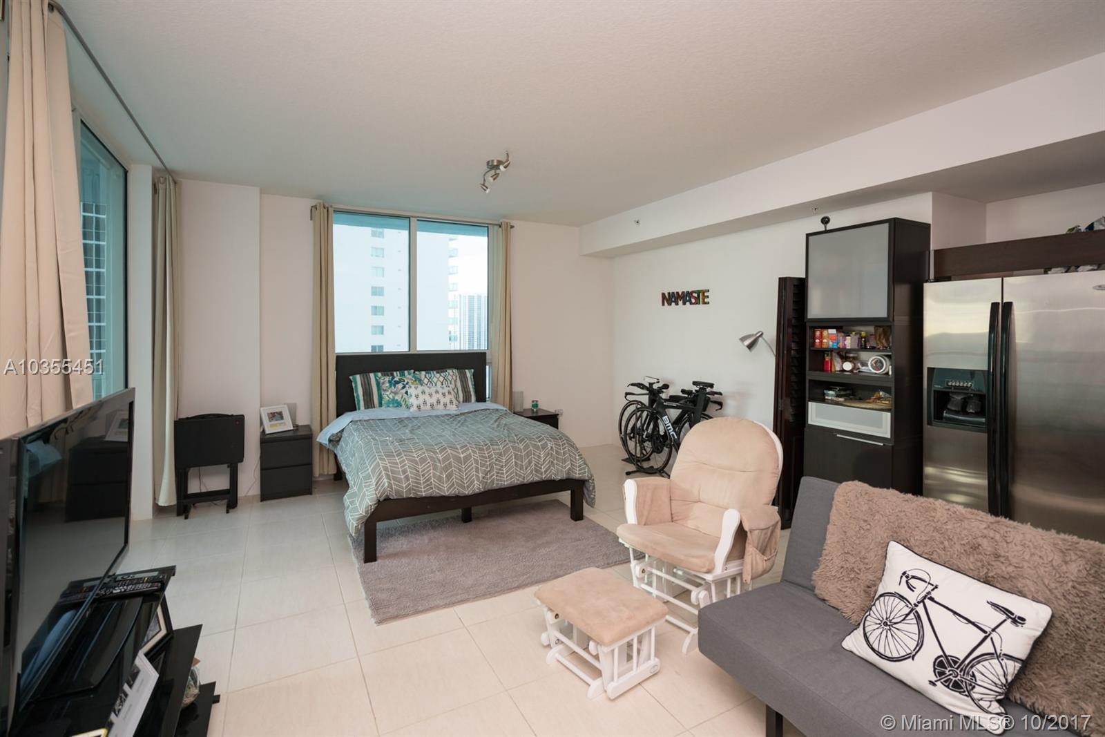 Wonderfully upgraded studio at Quantum on the Bay. Balcony with fantastic views of bay and skyline. Tastefully upgraded ceramic flooring and walk-in closets with spacious bathroom. Stainless steel appliances including washer dryer. Amazing amenities including 2 pools, billiards, multiple community rooms and a 2 story gym with cardio, weights, pilates and open spaces for stretching and more. There is also a private screening rooms for movies. Easy commute to