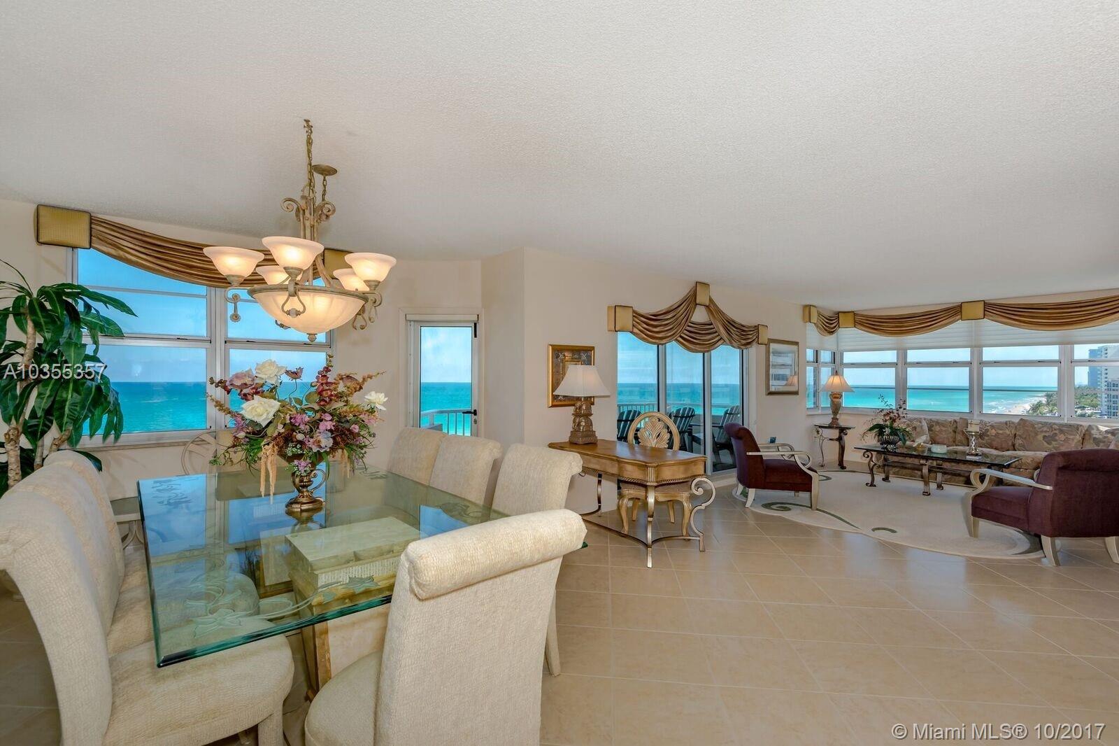 DIRECT OCEANFRONT 3 BR 2.5 BATHS UPDATED CORNER UNIT OVERLOOKING THE OCEAN AND THE POOL. BEAUTIFUL S/E EXPOSURE SUN ALL DAY ON TERRACE! *HURRICAINE PROOF WINDOWS/DOORS* LARGE DIAGONALTILES,UPDATED KITCHEN/ BATHROOMS,CUSTOM WINDOW TREATMENTS AND MANY EXTRAS. THIS UNIT IS IN PRISTINE CONDITON,TURNKEY.FURNISHED AND APPOINTED IN EXQUISITE TASTE. MASTER BR- ENSUITE BATH,LARGE CLOSETS, GUEST BEDROOM- FULL BATH,GUEST POWDER ROOM. A/C, CABLE, HOT WATER, PARKING,PLUS INC IN MAINT. BEST COMPLEX SUPERIOR AMENITIES!