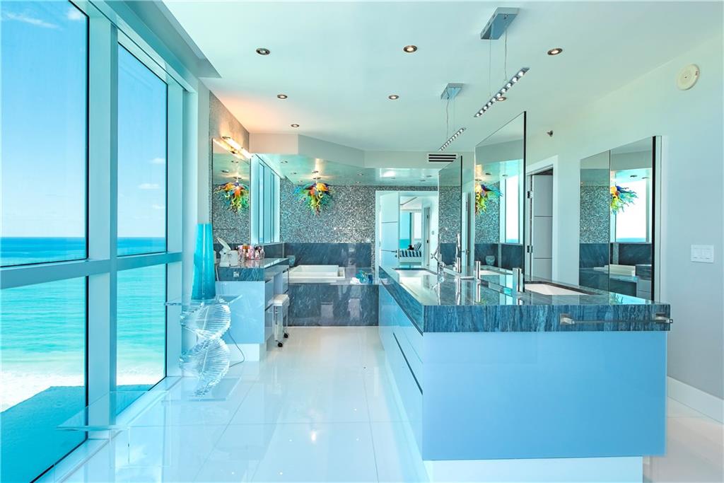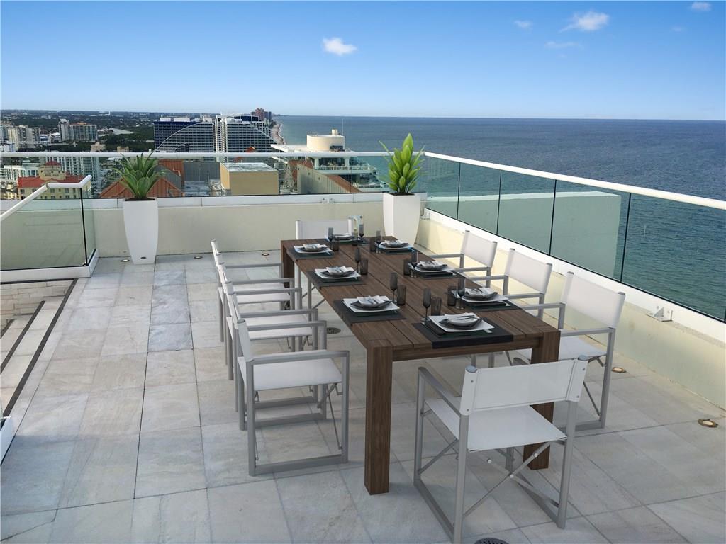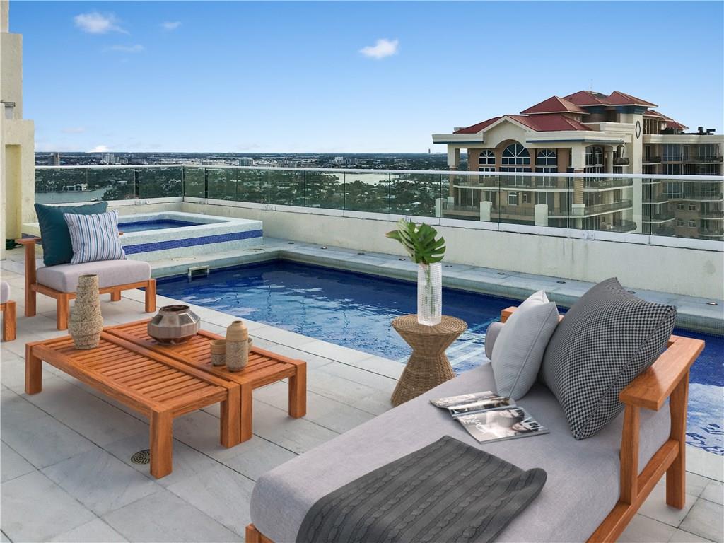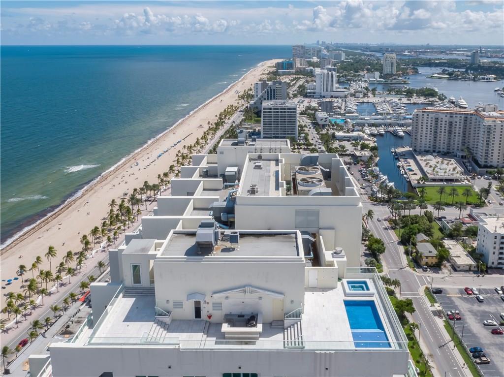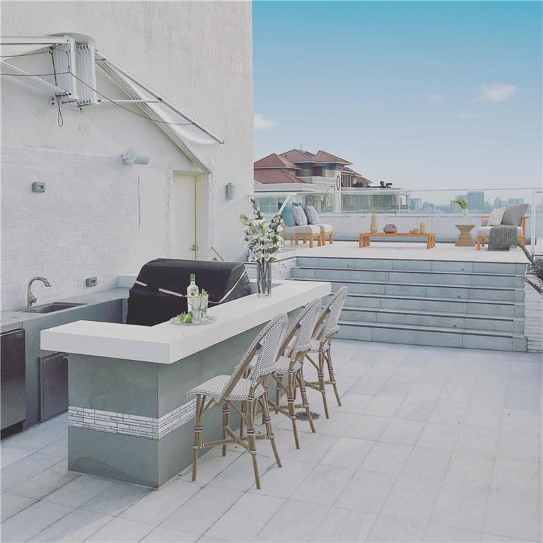 Direct Oceanfront! Imagine the combination of extraordinary Modern architecture with a privately deeded rooftop pool, spa, summer kitchen, bar & terrace capturing the ultimate ocean, city & intracoastal views! Private elevator access to your own roof top retreat.Custom floorplan: expansive open entertaining areas, chefs kitchen, private bedroom suites & entire Master Wing with over 2,000 sf of balconies & views from most rooms. Professional interior designer finishes. Resort quality full amenity building.