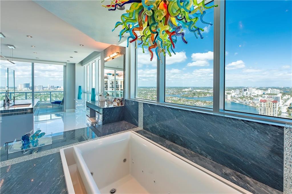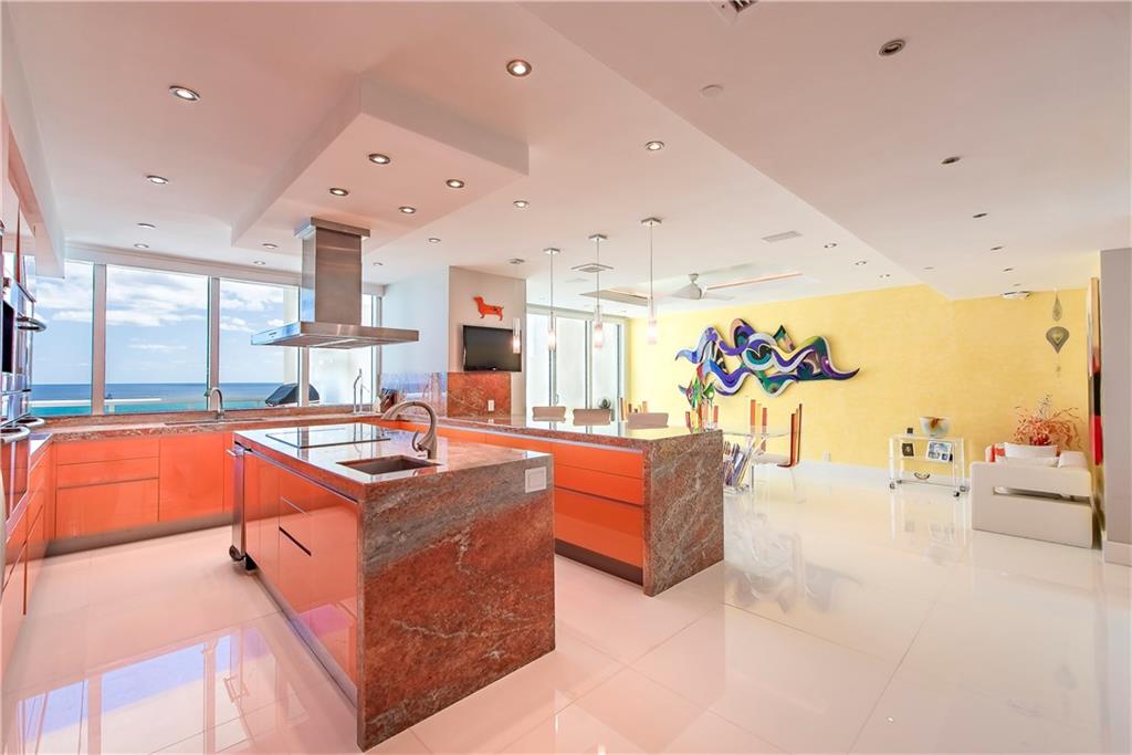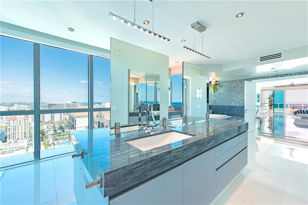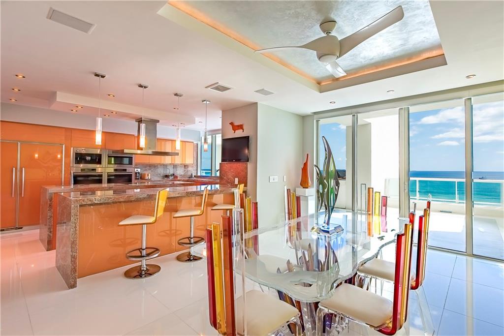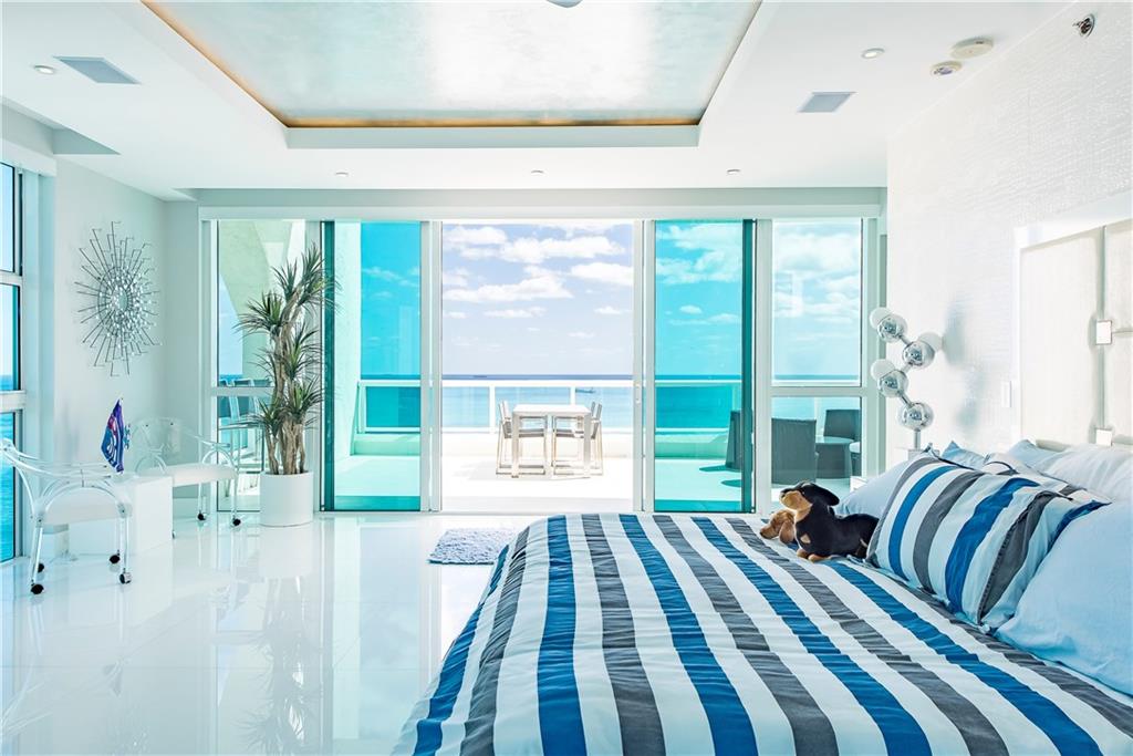 Direct Oceanfront! Imagine the combination of extraordinary Modern architecture with a privately deeded rooftop pool, spa, summer kitchen, bar & terrace capturing the ultimate ocean, city & intracoastal views! Private elevator access to your own roof top retreat.Custom floorplan: expansive open entertaining areas, chefs kitchen, private bedroom suites & entire Master Wing with over 2,000 sf of balconies & views from most rooms. Professional interior designer finishes. Resort quality full amenity building.