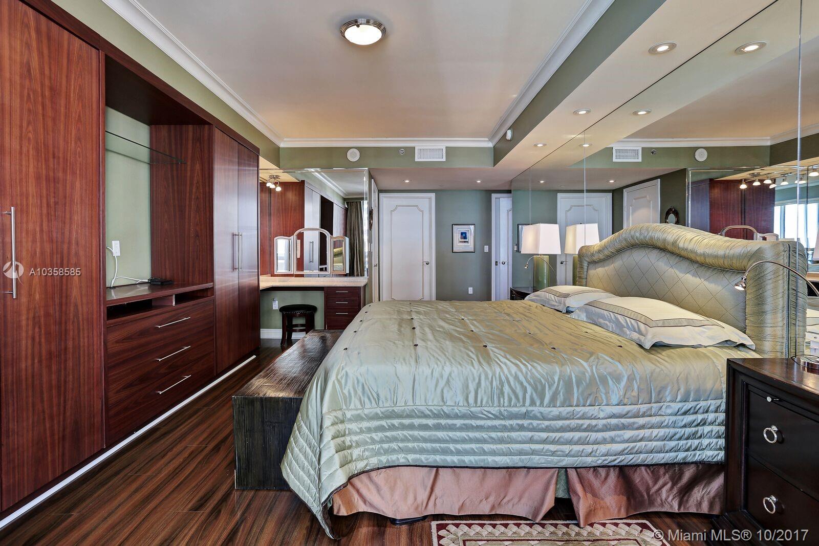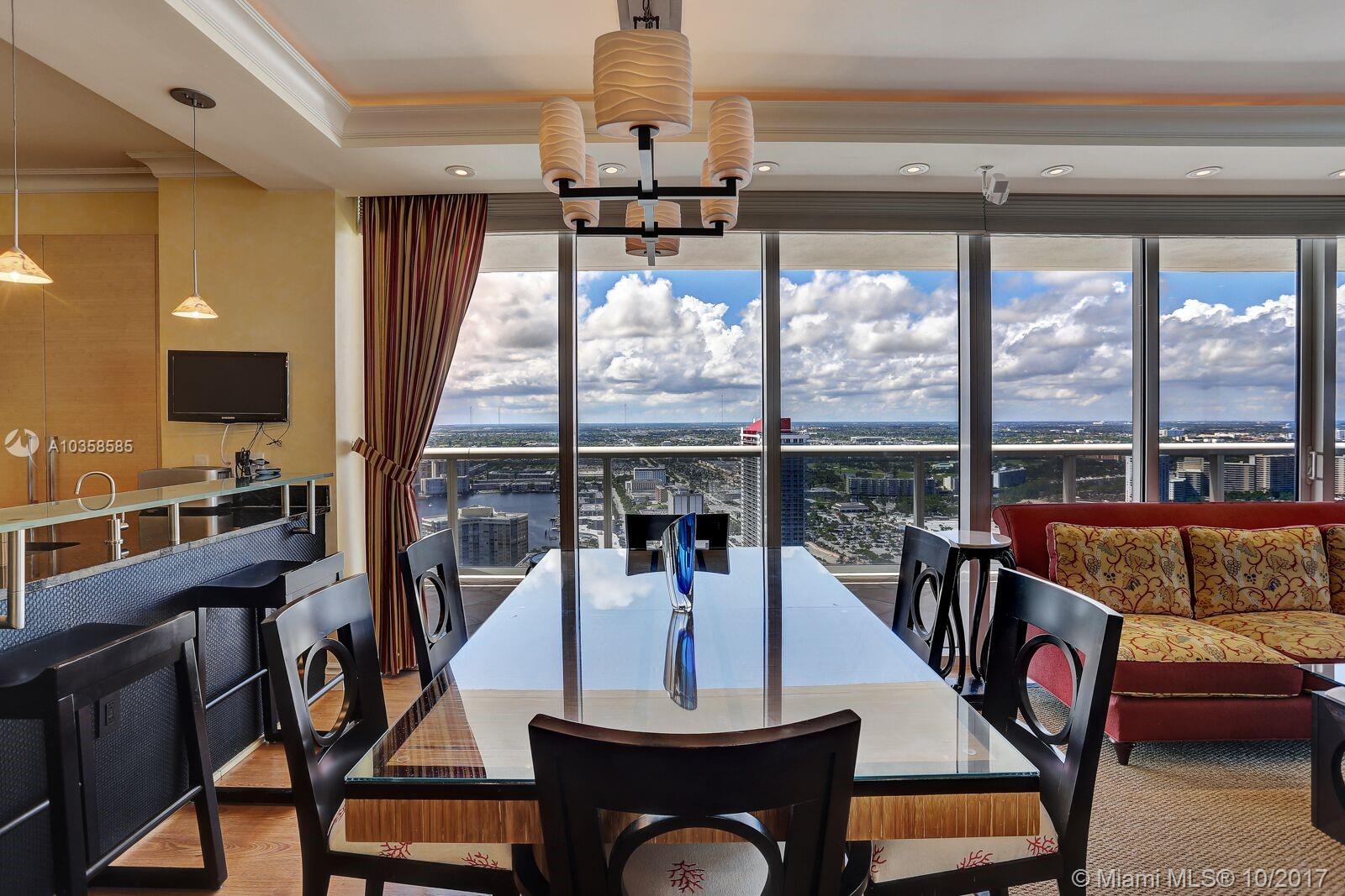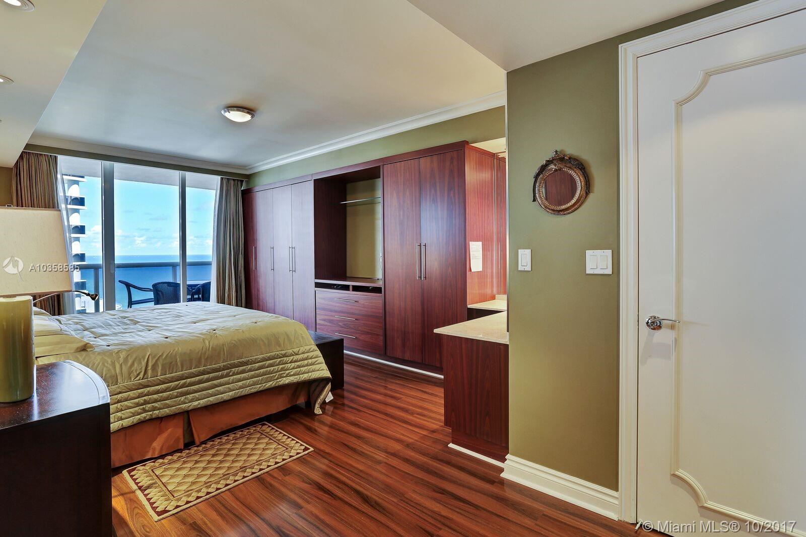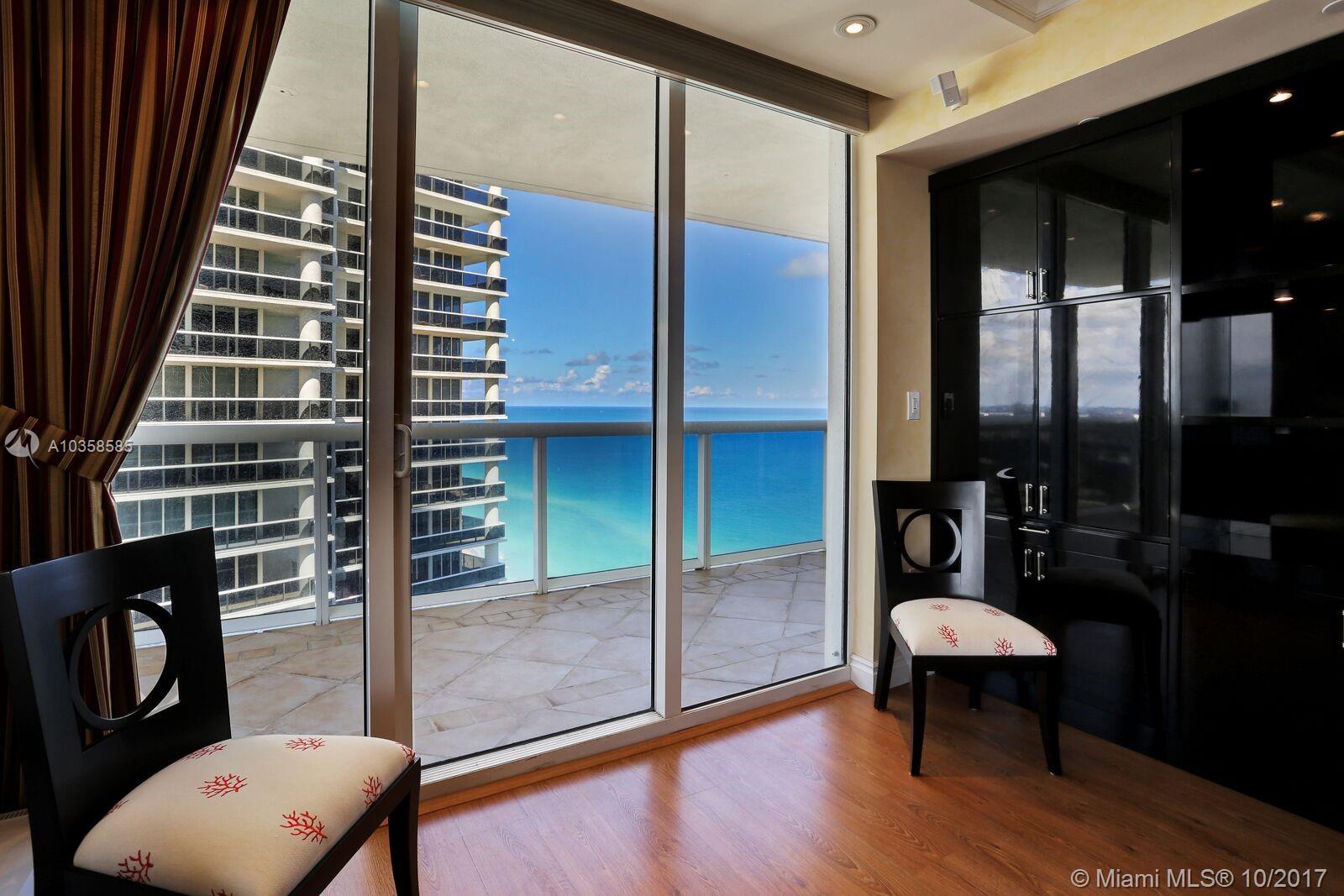 BEACHFRONT LIVING in the MOST DESIRABLE complex on Hallandale Beach. You will fall in love the minute you walk in the door. BREATHTAKING OCEAN VIEWS in the day with EXCITING & ROMANTIC CITY VIEWS AT NIGHT from the WRAP AROUND BALCONY. This high floor unit comes fully furnished with EXCEPTIONAL Built-ins in both bedrooms & living room, creating MASSIVE storage, unit can easily sleep 8 people for FAMILY VACATIONS! Remote control window treatments, state of the art GOURMET APPLIANCES, Glass snack counter and etched glass back splash, large pantry, RESORT STYLE amenities Close to airport, fine dining, Hard Rock, Nova University, Houses of Worship, Fantastic Shopping, ENTERTAINMENT VENUES. Restaurant at the 2 pool areas, Massage room, Movie room, everything you would expect.