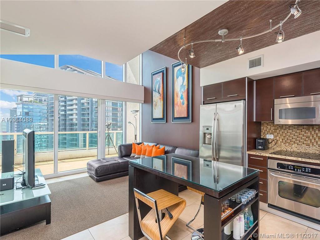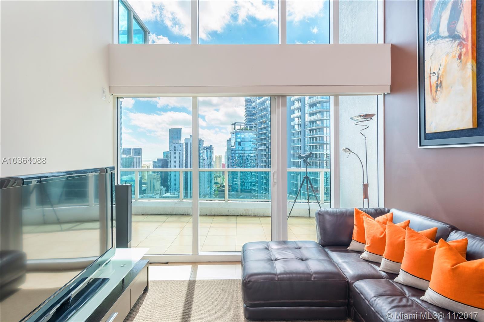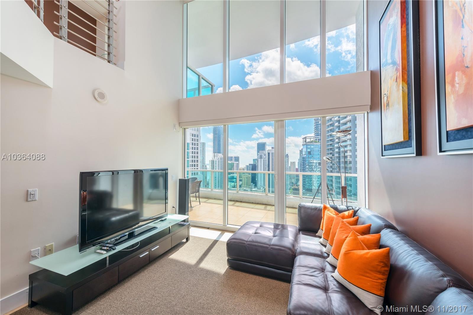Beautifully furnished, 2-story loft w/ 2 Bedrooms, 2 Bathrooms, a Den, stainless steel appliances, granite countertops, stackable washer/dryer, motorized shades, 18-ft high ceilings w/ floor-to-ceiling glass windows, and breathtaking views of the city & bay from the 43rd + 44th floors. Tons of closet space w/ humongous walk-in closet in the master bedroom. All closets have built-in cabinets. Premium parking space on 1st floor. FHA-approved building! Buy w/ as little as 3.5% down for qualified buyers. Amenities include: pool, 3-level fitness center & spa, business center, party room, 24-hr valet parking, and 24-hr concierge. Just a few short blocks from shops, restaurants, and movie theater at Brickell City Centre. Metromover station conveniently located just steps from the lobby door.