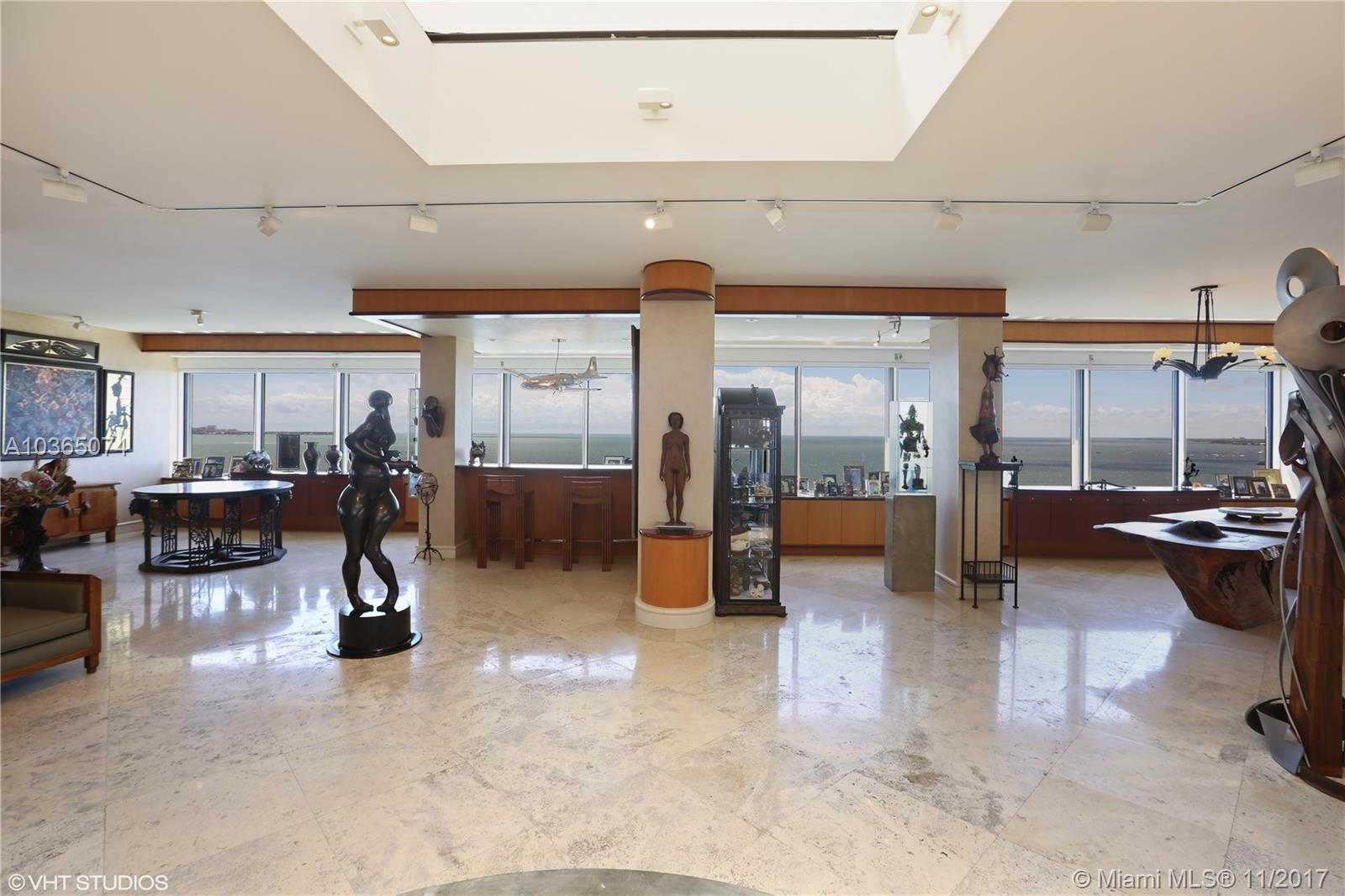 Rare opportunity to own a double PH at Grove Isle. This 4 bed/3.5 bath with over 5,000 SF is an Art lovers dream. This residence offers expansive balconies, unobstructed views of Biscayne Bay, Key Biscayne and Downtown Miami, 9.5 ft. high ceilings, great lighting & lots of wall space. The open kitchen has granite counters, stainless steel appliances and an eat-in breakfast room. Other features include a full size laundry room, custom built-ins, a sky-light, and stone floors throughout. The photos speak for themselves!