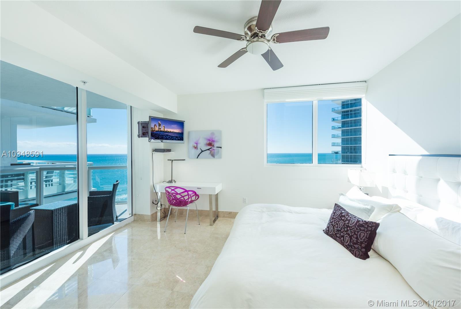 Experience 6 star resort luxury on this high floor unit with two spacious terraces allowing amazing views both day and night. Every bedroom has access to terraces. Other features include: private elevator entrance, gourmet European kitchen, granite counter tops, beautiful marble floors throughout, lavish master suite & more. Residents can relax at the clubhouse, modern gym, sauna, massage room, movie theater and private wine cellar. Explore mid beach's finest beach service, shopping, and fine restaurants.