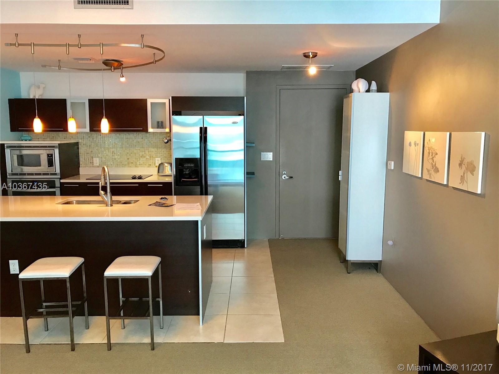 Beautiful decorated unit on the 40th floor with bay and city views, unit features open floor plan, Italian kitchen and floor to ceiling windows. Building offers state of the art gym, two pools, sauna, movie theatre, valet and more. Centrally located close to everything, just mins from the beach, entertainment and exclusive shops. according to the developer floor plan square footage is 750.