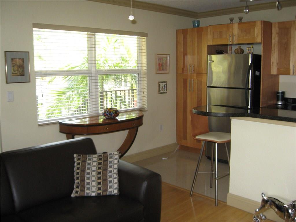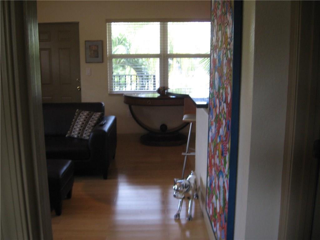 End/corner unit with IMPACT WIDOWS on 3 sides, open granite/stainless kitchen, bamboo and marble flooring, WASHER/DRYER IN UNIT, crown moulding, custom blinds, last building on a quiet dead end street overlooking Holiday Park tennis courts. Can rent immediately with tenant currently in place at $1400/mo. LOCATION, LOCATION!!!