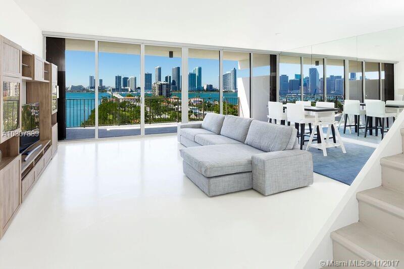 Unique two story unit with amazing water and skyline views form every angle. Completely renovated with exceptional attention to detail and timeless contemporary design. Full walls of floor to ceiling sliding glass doors opening onto large terraces on both levels. This oversized 1 bedroom / 1.5 bath has 9.3" ceilings with a large bedroom upstairs. Incredible location on the red hot Venetian Islands with easy access to South Beach, downtown, the Standard Spa, shopping, restaurants and Lincoln Road! Easy to show.