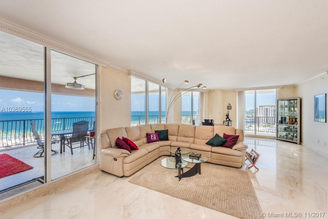 2 bedroom + den and 2.5 bathrooms, panoramic view to the ocean, intracoastal and city. Private elevator to private foyer. This model has the largest balconies in the building. Great kitchen with granite counter tops. Amazing marble floor. 24 hour security and super friendly staff will make you feel right at home. Gym, pool, SPA, valet, 2 pets any size welcome. Full service luxury building located next to the beach and Las Olas
