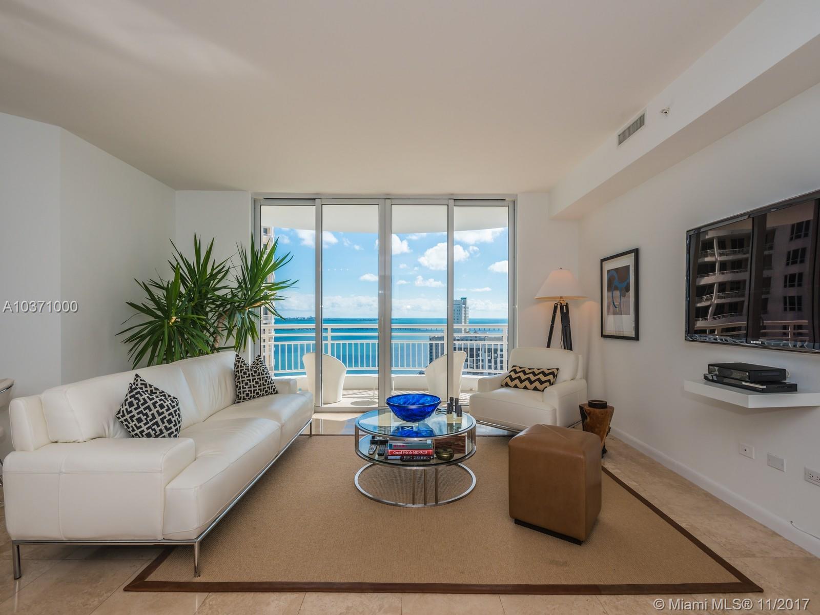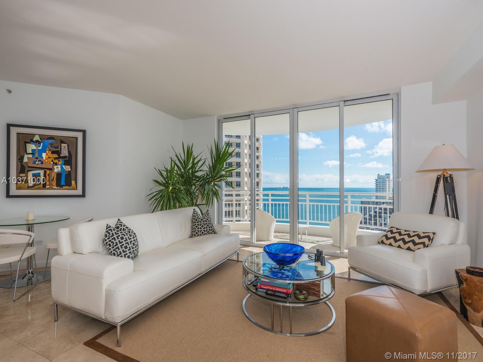 Enjoy stellar views from this light, spacious 1 bedroom,1 1/2 baths upgraded gem overlooking Biscayne Bay, Miami Beach, Port of Miami, Miami skyline in Three Tequesta Point on Brickell Key, an exclusive island community off of Downtown Miami. Large walk in closet, W/D, new Italian kitchen includes wine cooler, large balcony. Condo amenities include heated pool, new state of the art gym, BBQ area, basketball, tennis & racquetball/squash courts, sauna, valet, 24/7 concierge & more.