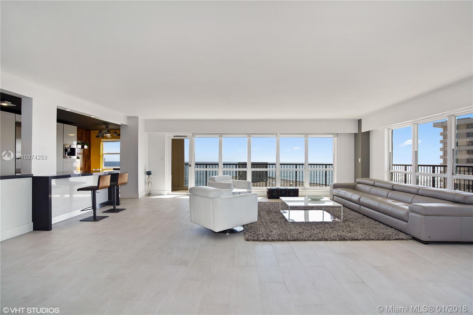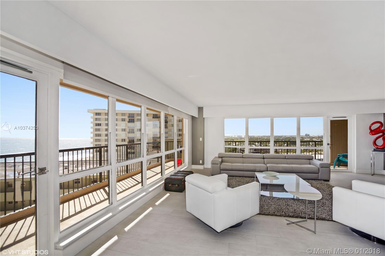 BREATHTAKING SOUTHEAST CORNER, THIS ONE'S A 10!! HUGE WRAP AROUND BALCONY. DIRECT OCEANFRONT VIEWS, PLUS INTRACOASTAL & SKYLINE VIEWS TO DOWNTOWN EAST/SOUTH/WEST.. SEMI PRIVATE ELEVATOR. COMPLETELY REMODELED WITH A CONETEMPORARY FLAIR. HIGHEST QUALITY APPLIANCES. THERMADOR 36" BUILT-IN FRENCH DOOR REFRIGERATOR, BOTTOM FREEZER, BOSCH BUILT IN WALL CONVECTION OVEN, BOSCH INDUCTION DIGITAL COOK TOP & HOOD, BOSCH DISHWASHER & BUILT IN ESPRESSO MACHINE. EUROPEAN KITCHEN CABINETS, QUARTZ CASCADE COUNTER TOPS AND MORE. THIS ONE IS A MUST SEE! SMALL PET WELCOME. RENT RIGHT AWAY. AT $370.00 PER FOOT THIS IS THE BEST DEAL IN LAUDERDALE BY THE SEA.