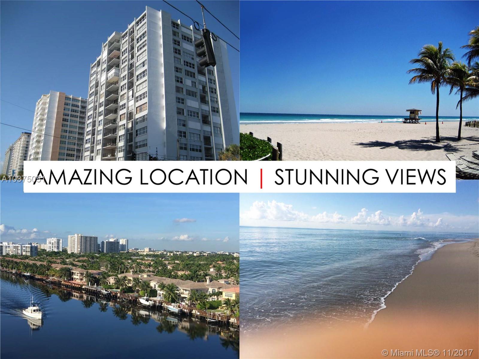 Buy This Home Now and, If You Don’t Like It After 18 Months, I Will Sell It For FREE*.WOW! 180-degrees of magnificent water and sunset views. Desirable location across a street from the ocean, unbeatable access to the Hollywood beaches, world-famous Margaritaville resort, Boardwalk, and more.Enjoy the sound of the waves and glorious sunsets from your balcony overlooking tranquil intro-coastal waters. Indulge in cozy living in this light & bright corner. Private waterfront building with solar deck, heated pool, visitor parking was designed to spoil you with comfort and offer the best of South Florida living. Awesome Potential! Partially remodeled condition offers a chance to renovate specific to buyer’s taste. No-rent-1st year restriction guarantees safe and quiet residential paradise.