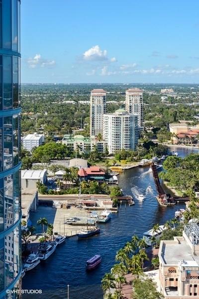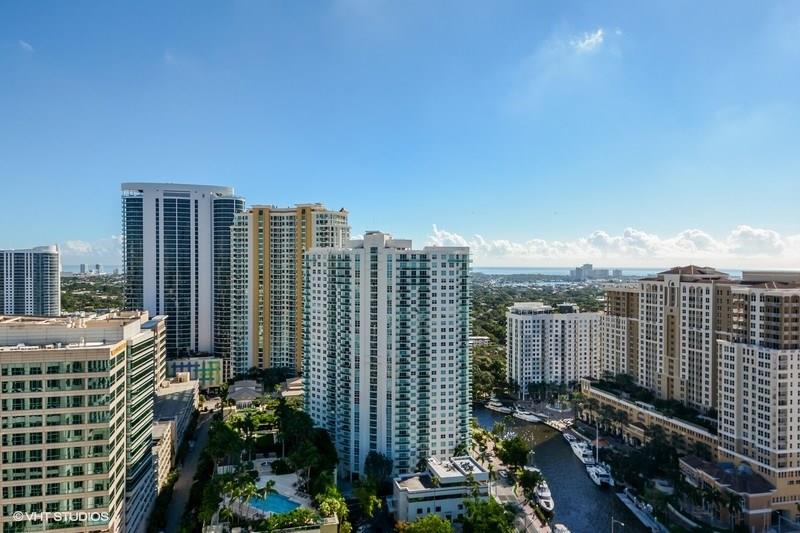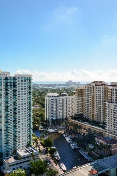 Serious seller is relocating and has priced this 30th floor gem for a quick sale! Unique, modified Columbus model with cool, exposed stainless A/C duct work and solid glass wall to huge master bedroom gives a real modern retro feel. Polished marble flooring throughout the unit, 3rd bonus room is ideal for home office/den, one generous sized balcony facing East with awesome views of downtown, Las Olas and the ocean, 2nd balcony facing West offering great views of the city lights and new river.