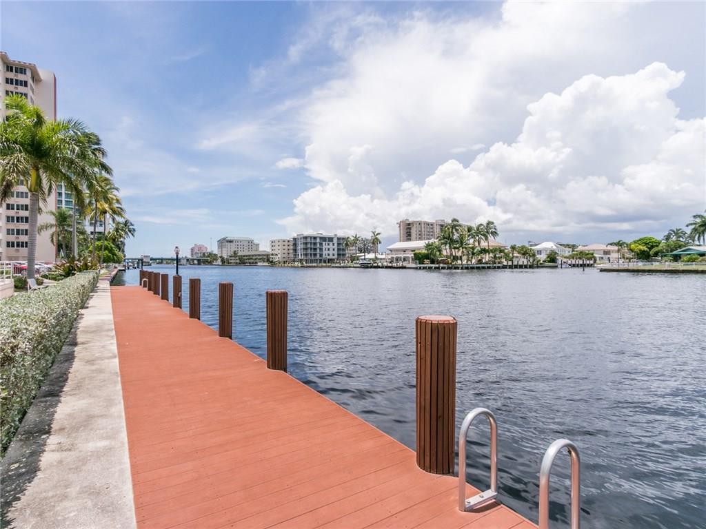 Tastefully remodeled 2 Bedroom, 2 Bath Corner unit with Covered Balcony. Split bedroom plan. Unit has tiled floors throughout, hurricane impact windows and door, granite in kitchen and baths, custom lighting, high top vanities in baths, newer air-conditioner. Building has many amenities, including 30x60 resort style pool. Short distance to beach, fine dining, shopping, Post Office, Banks, grocery stores and so much more! Water Taxi close by. Community Bus service available. See Broker Remarks.
